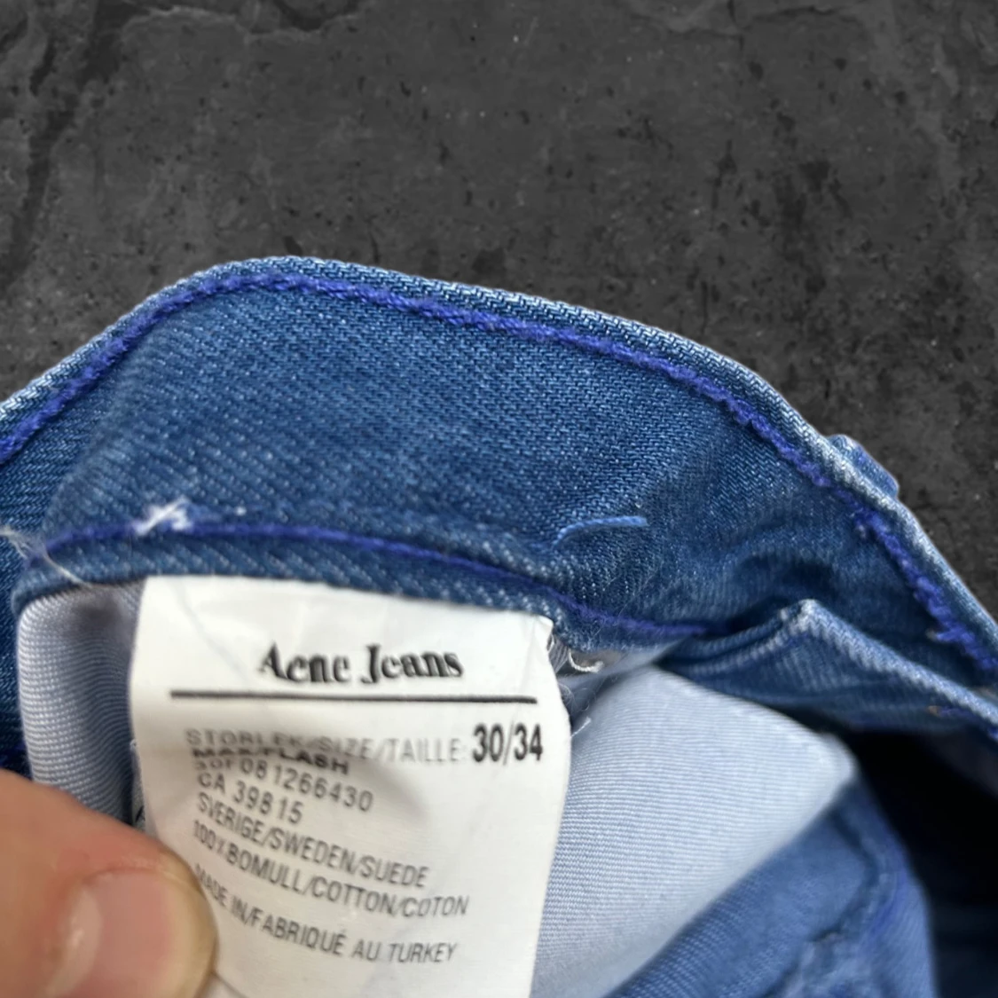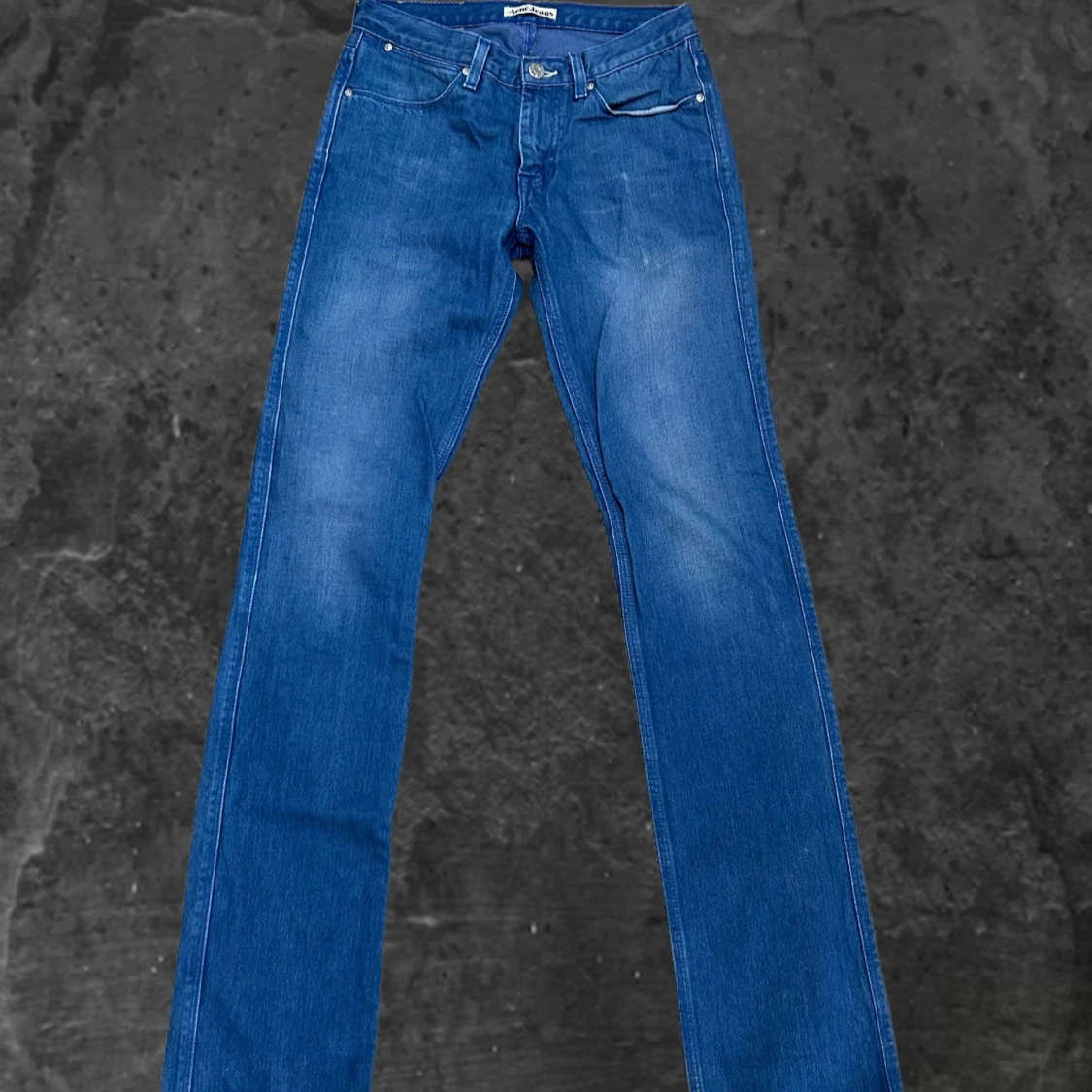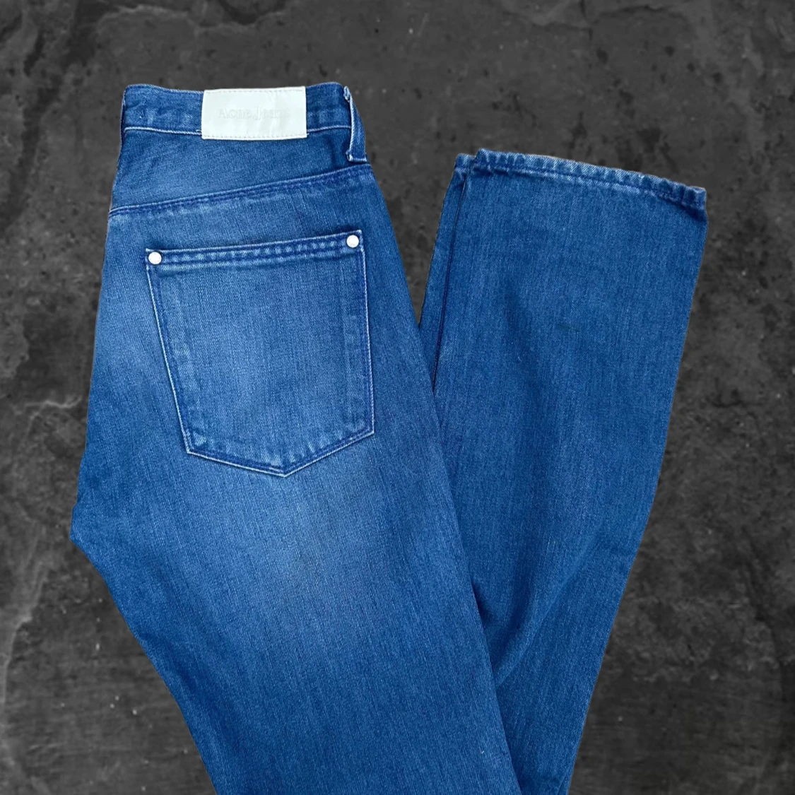 Snygga blå jeans från Acne Jeans i klassisk rak modell. Jeansen har fem fickor, silverfärgade nitar och normal passform. Tillverkade i 100% bomull för en skön känsla och stilren look. Perfekta för dig som gillar enkel och tidlös denim.