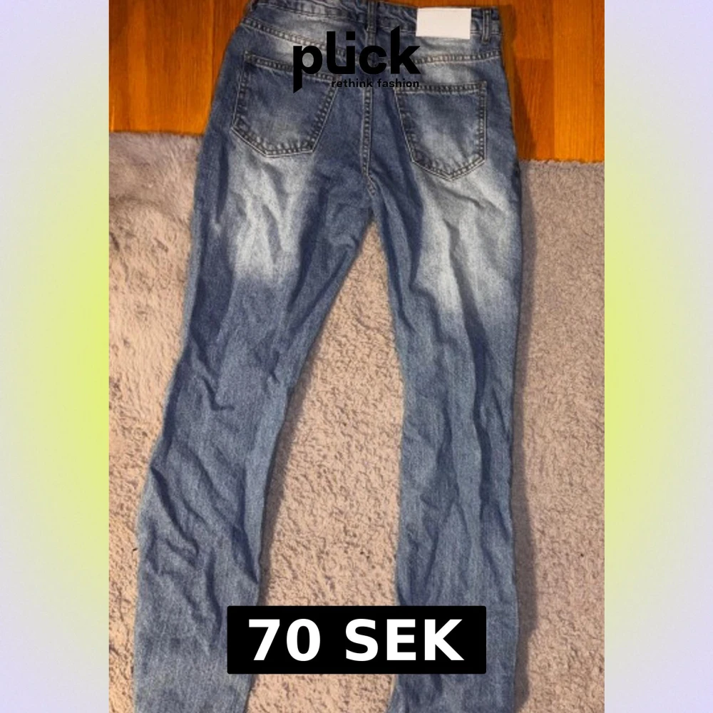 Snygga blå jeans från BoohooMAN i storlek 28. Modellen har klassisk femficksdesign, ljus tvätt med slitningar och raka ben. Jeansen har normal passform och är tillverkade i bomullsmaterial för skön känsla. Perfekt för dig som gillar en avslappnad stil. Helt oanvända.