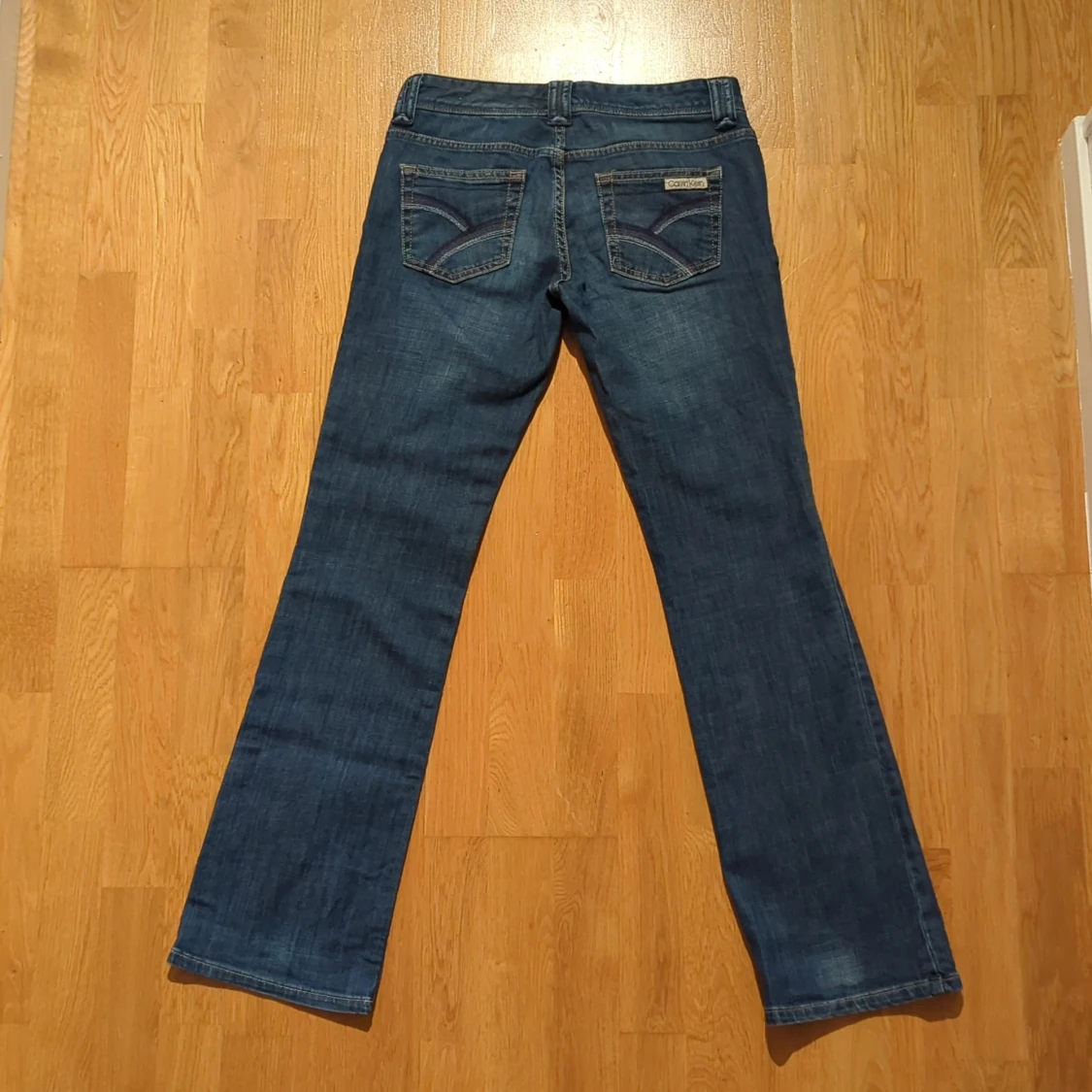 Snygga blå jeans från Calvin Klein 🩷 Lågmidjade bootcutjeans. Mycket bra skick. Säljer för att de inte passar längre. Innerbenslängd ca 81 cm, midjemått ca 80. US storlek 2.