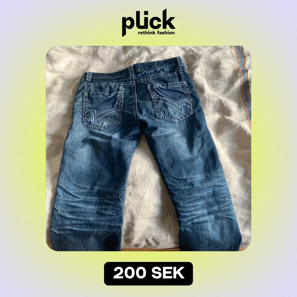 Säljer ett par snygga blå jeans från Clockhouse. De har en klassisk femficksdesign med coola sömmar på bakfickorna. Perfekta för vardagsbruk och passar till det mesta. Dragkedja och knapp framtill. Sköna och stilrena!