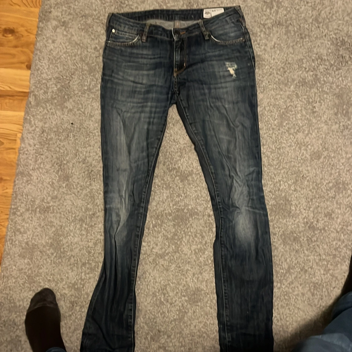 Säljer ett par blå skinny jeans från Crocker, modell Pep! De har en snygg slitning på ena benet och klassisk femficksdesign. Perfekta för en avslappnad stil.