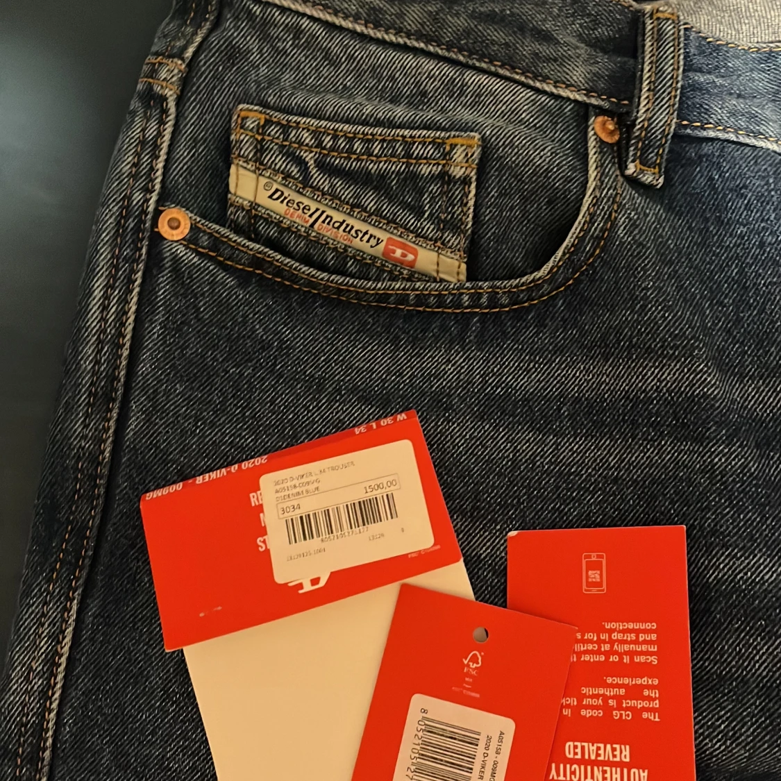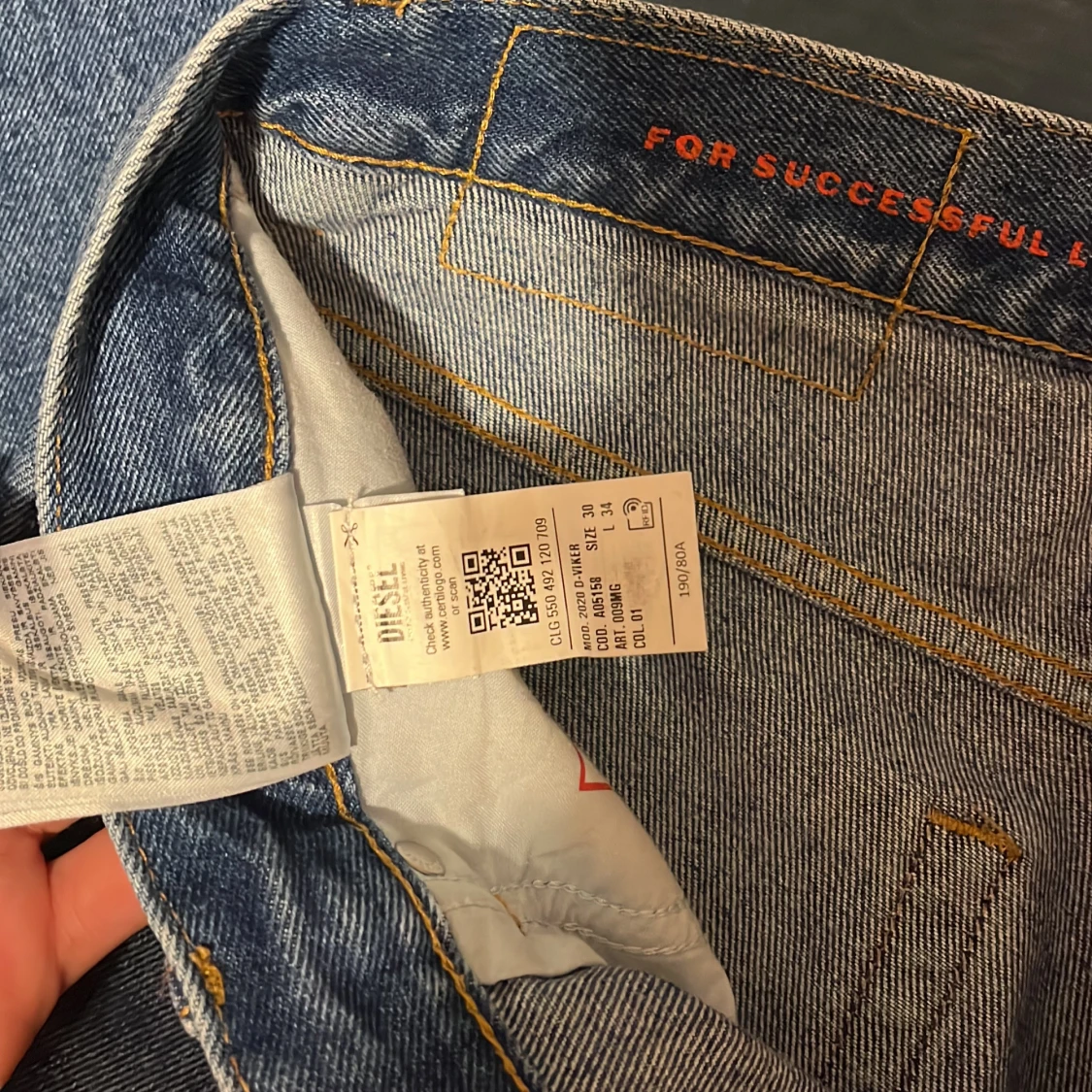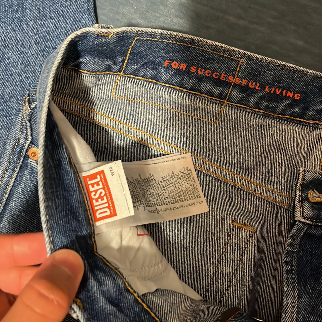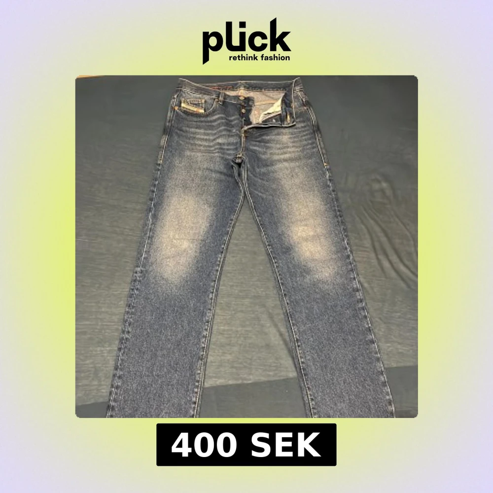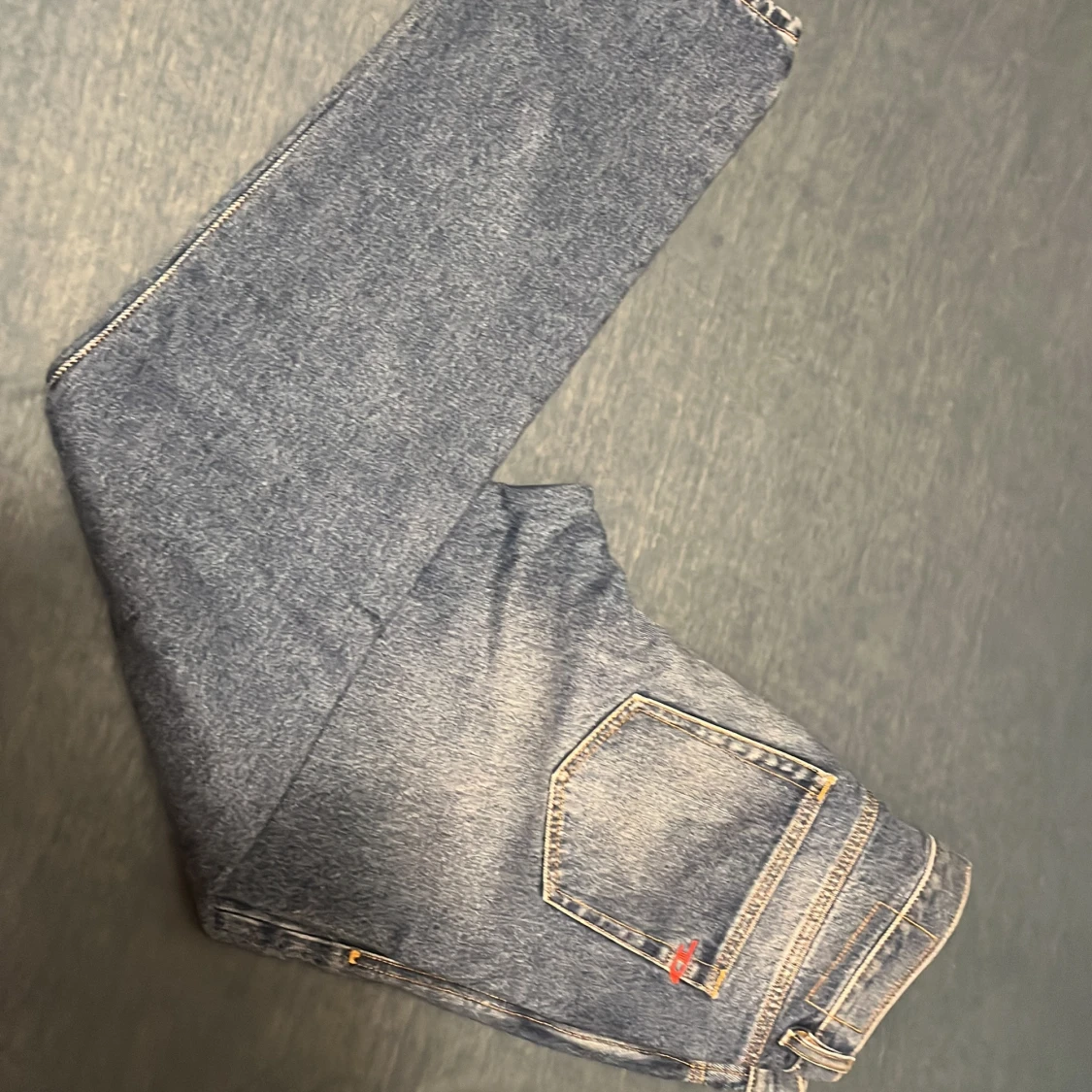 Snygga blå jeans från Diesel med klassisk femficksdesign och knappgylf. Jeansen har en lätt tvättad look och är perfekta för en avslappnad stil. Märkesdetaljer syns på fickan och insidan av linningen. W30 L 34