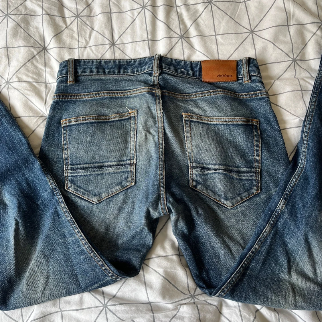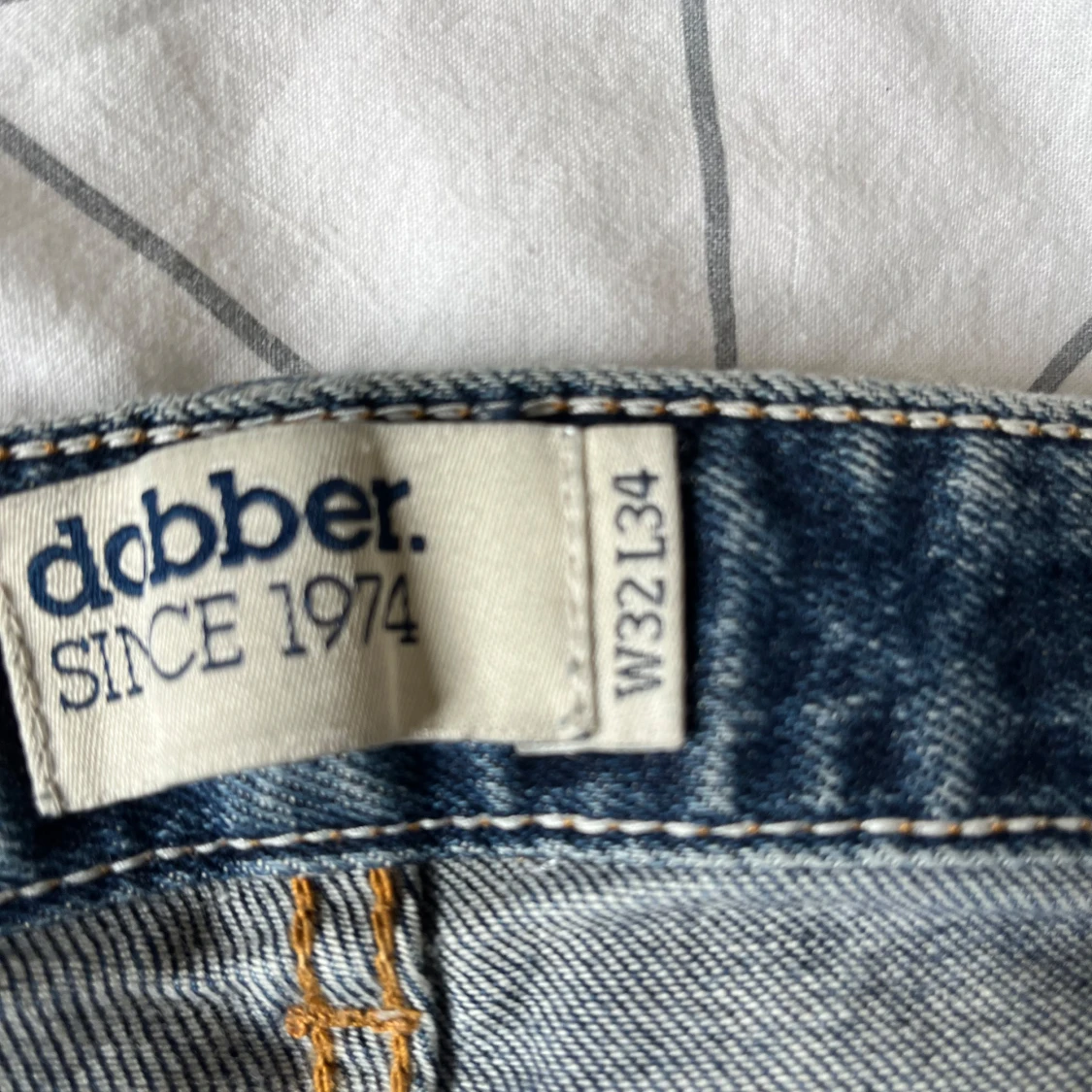 Snygga blå jeans från Dobber med klassisk femficksdesign och slitna detaljer för en cool look. Jeansen har rak passform och normal midja, med kontrastsömmar och läderpatch bak. Perfekt för dig som gillar tidlös denimstil.