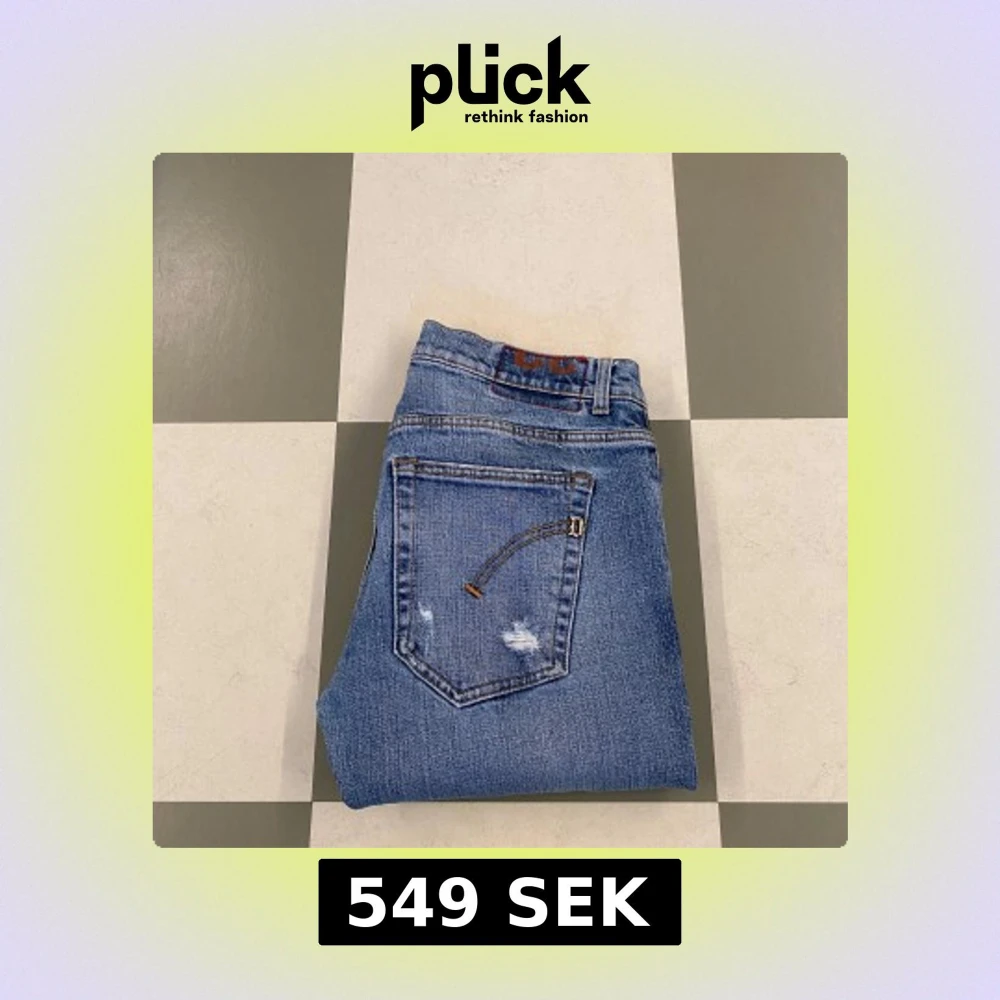 Snygga blå jeans från Dondup. De har en klassisk femficksdesign och en bekväm passform. Perfekta för en avslappnad stil. Väldigt unika och tvär feta dondups! Mycket eftertraktade och populära! Mycket bra skick! Storlek 32! Hör av dig vid frågor och funderingar! 42 cm i midjemått och 95 i längd!