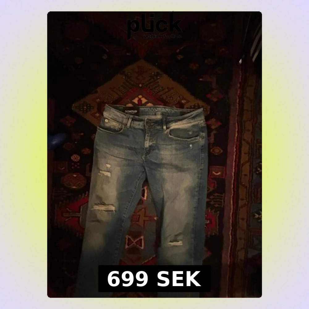 Snygga blå jeans från Dondup med slitningar och hål på benen för en trendig look. Klassisk femficksmodell med knapp och dragkedja. Jeansen har en ljus tvätt och är tillverkade i bomullsdenim. Perfekta för dig som gillar en avslappnad och cool stil. Är i modell Gaia, och har en relativt tight passform. Tagg medföljer ⭐️