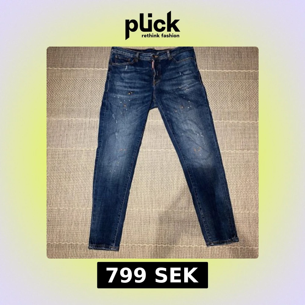 Snygga blå jeans från Dsquared2 med en cool slitningseffekt och orange detaljer. De har en knappgylf. Skick: 9,5/10