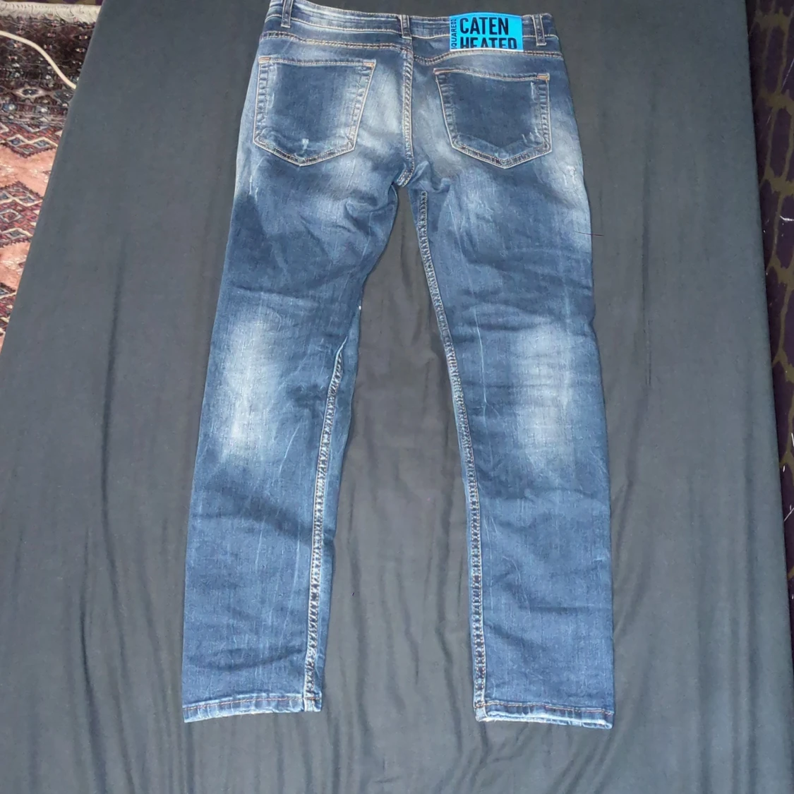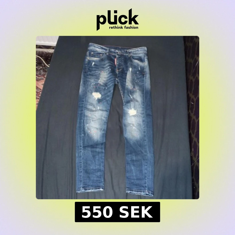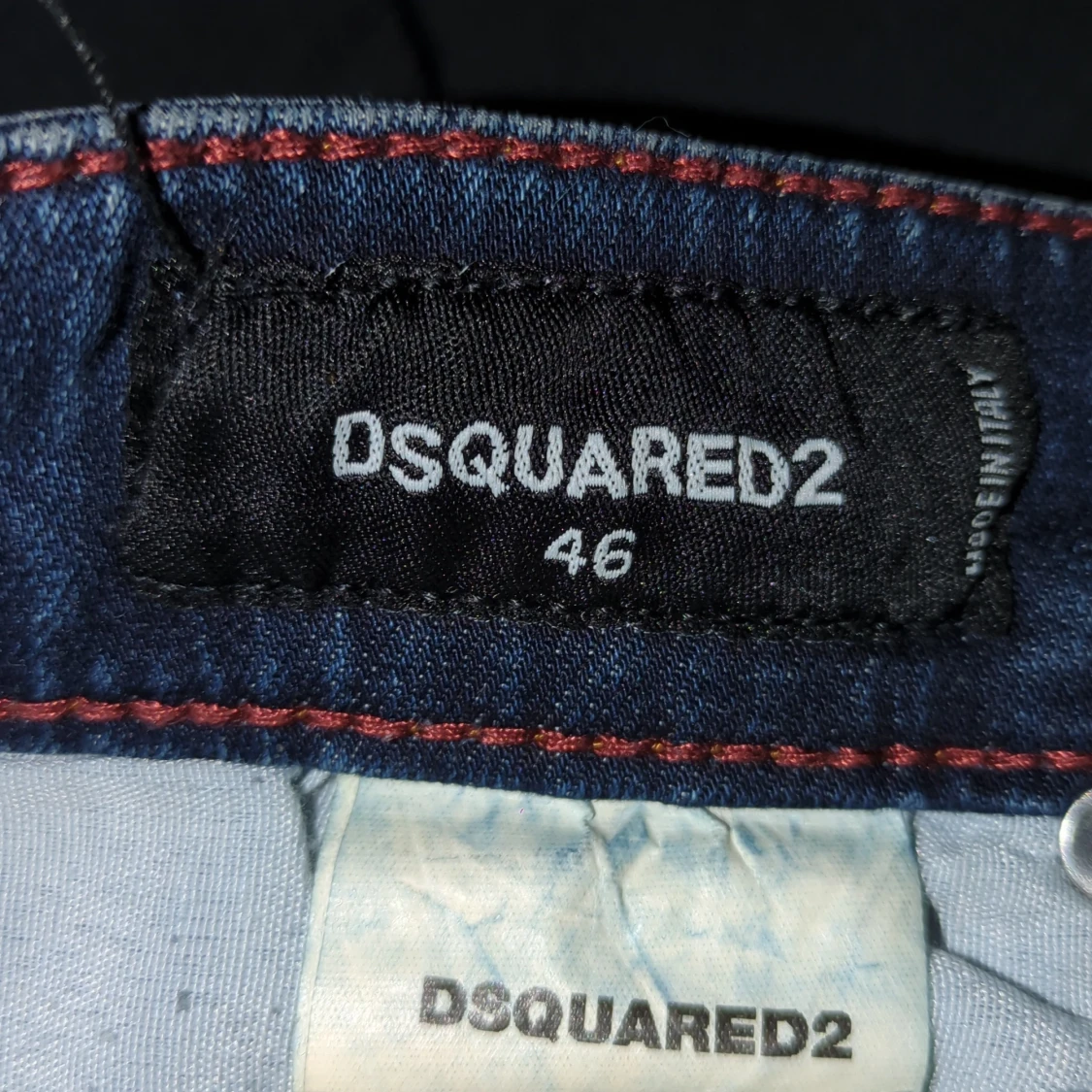 Snygga blå jeans från Dsquared2 med coola slitningar och färgstänk. De har en klassisk femficksdesign och en knappgylf. Perfekta för en avslappnad stil med en touch av edge.