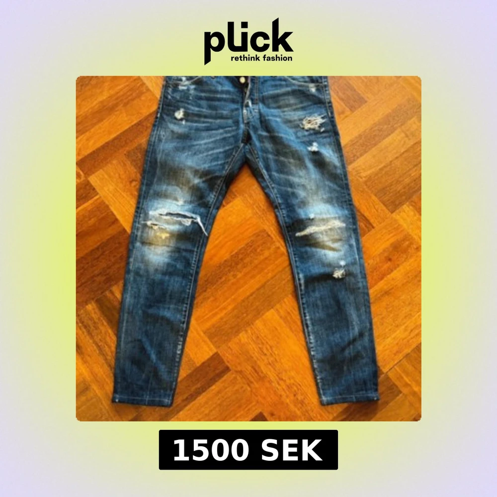 Originaljeans from Dsquared2. Storlek 50. Motsvarar 31/32 i midja. Inköpta i polen för 2500kr. Kvitto finns. Total längd 105 Längd från grenen 72 Midjebredd 46 Benvid nedtill 15 Benvidd i grenen 28