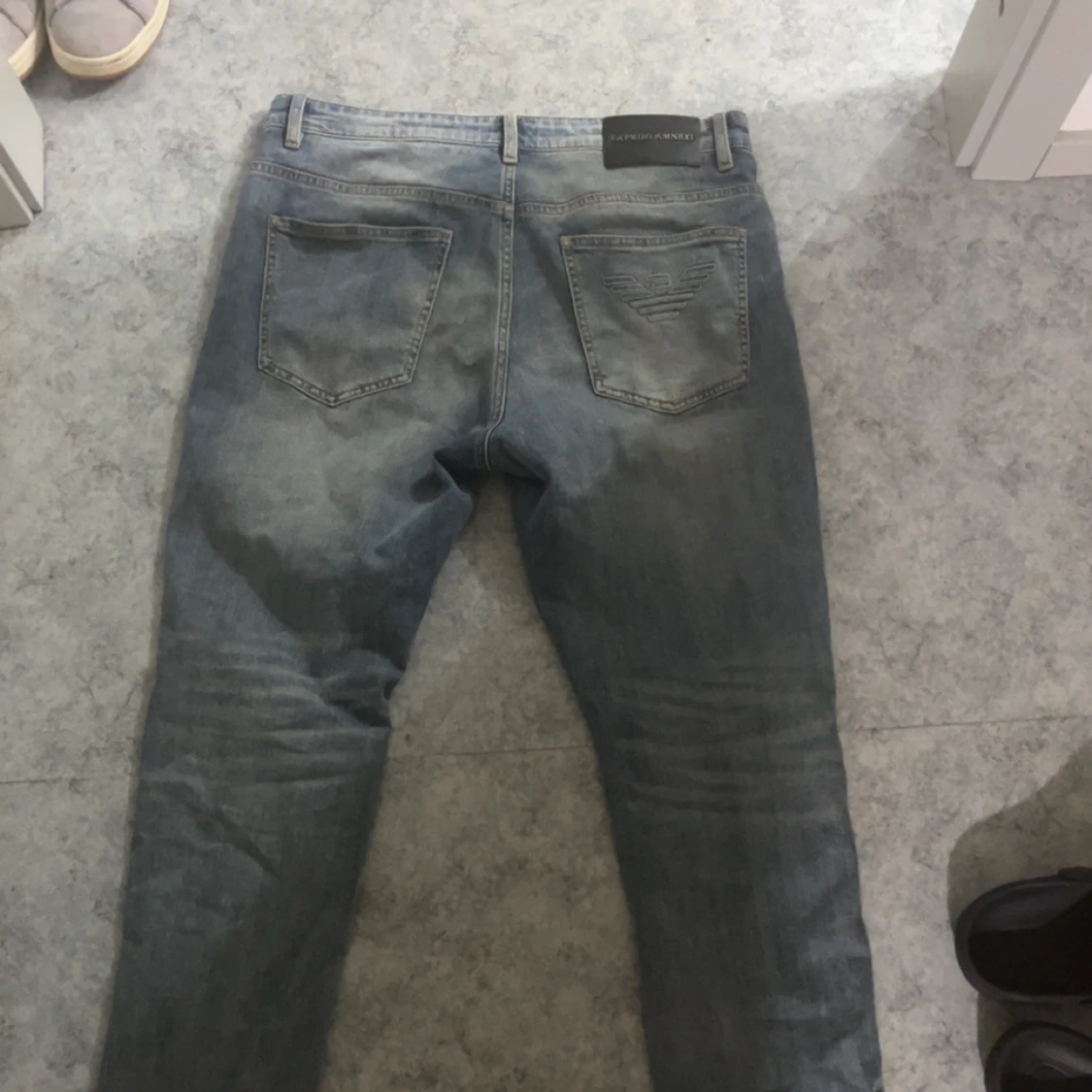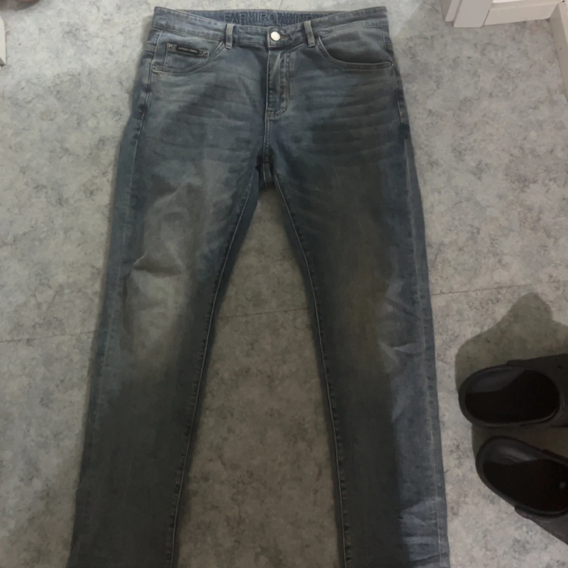 Snygga blå jeans från Emporio Armani med klassisk femficksdesign och broderad logga på bakfickan. Jeansen har en rak passform och är tillverkade i mjukt denimtyg. Perfekta för en chill och stilren look.