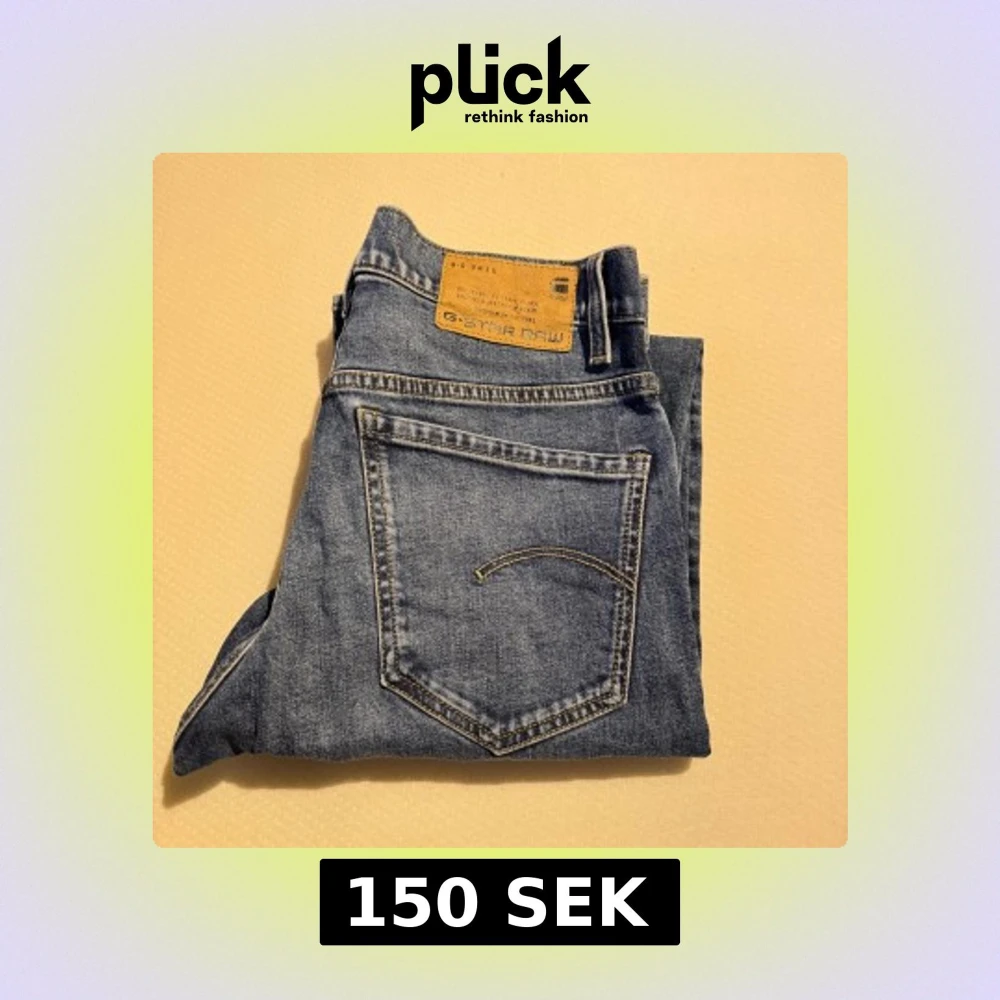 Säljer ett par klassiska blå jeans från G-Star RAW, modell Mosa Straight. De har en rak passform. Perfekta för en avslappnad stil. Knappast använda då de är för små för mig. Storlek ser man på andra bilden.