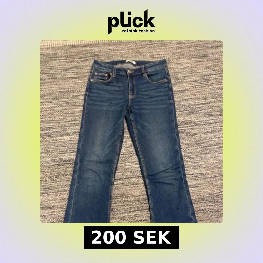 Snygga blå jeans från Gina Tricot med klassisk femficksdesign och knappgylf. Perfekta för en avslappnad stil med en touch av vintagekänsla. Passar bra till både sneakers och boots.