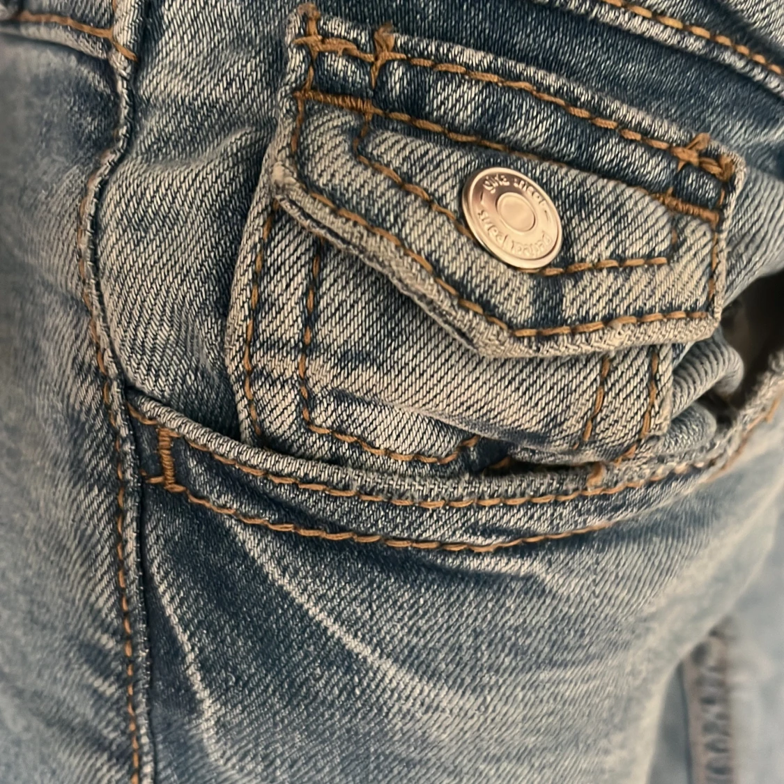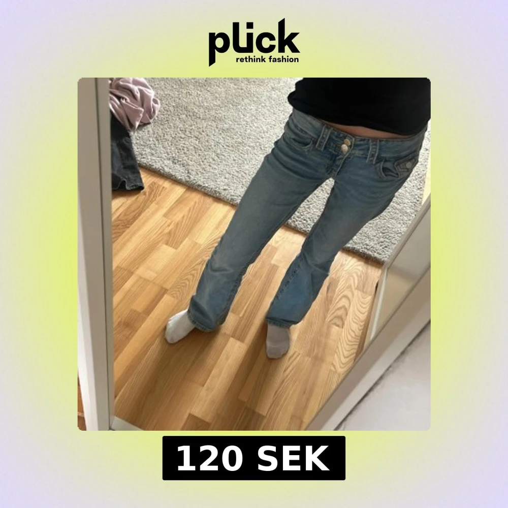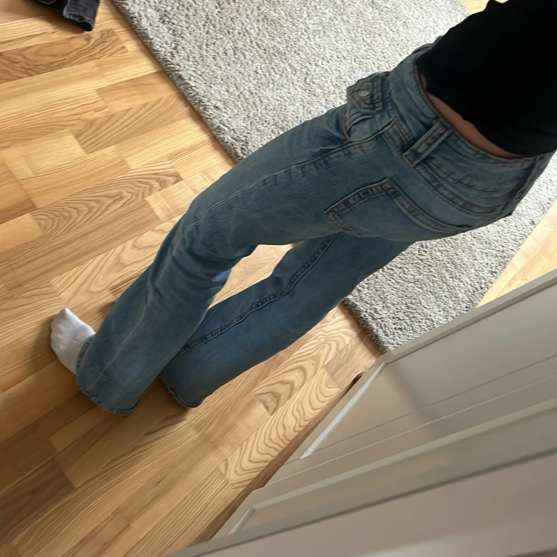 Snygga blå jeans från Gina Tricot i en klassisk design. De har en låg midja och en straight passform. Perfekta för en avslappnad stil. Jeansen har knappar och en liten ficka fram.
