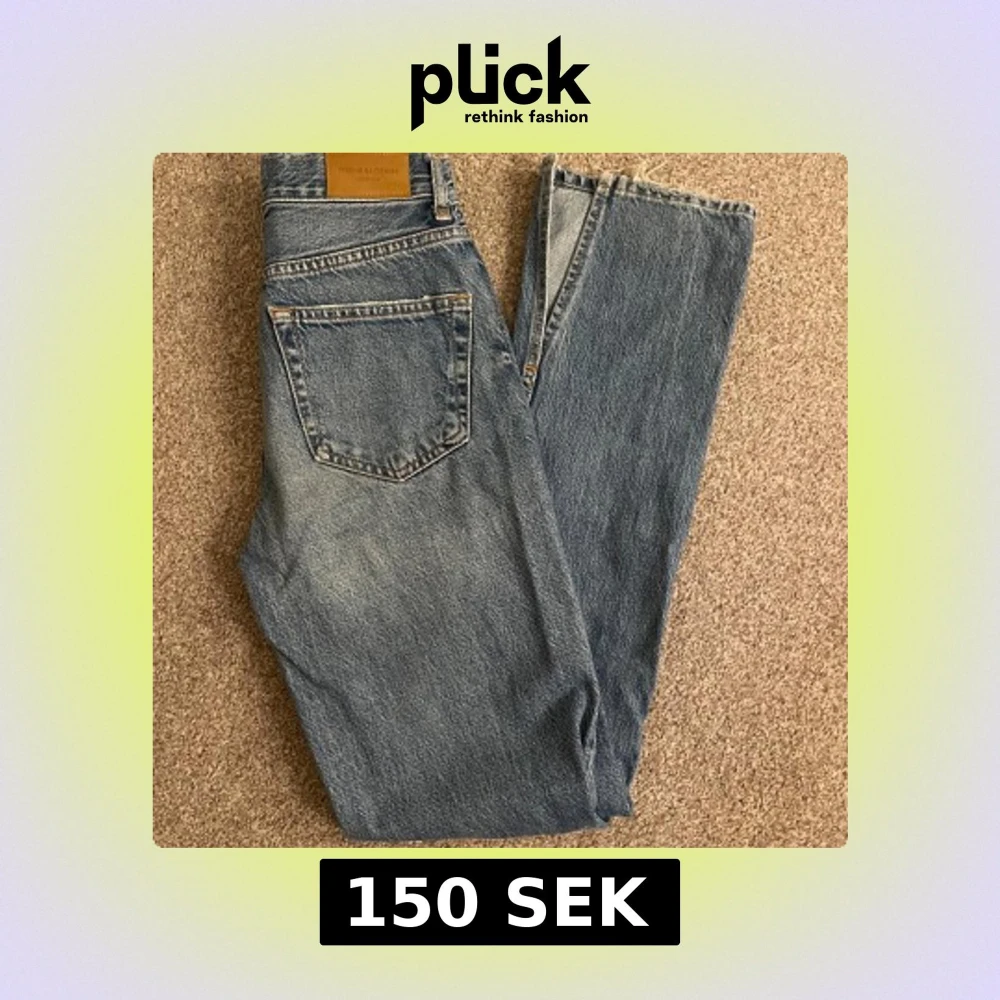 Säljer ett par mörkblå jeans från Gina. De har en rak passform och har slits längst ner! Har några slitningar längst ner!💕