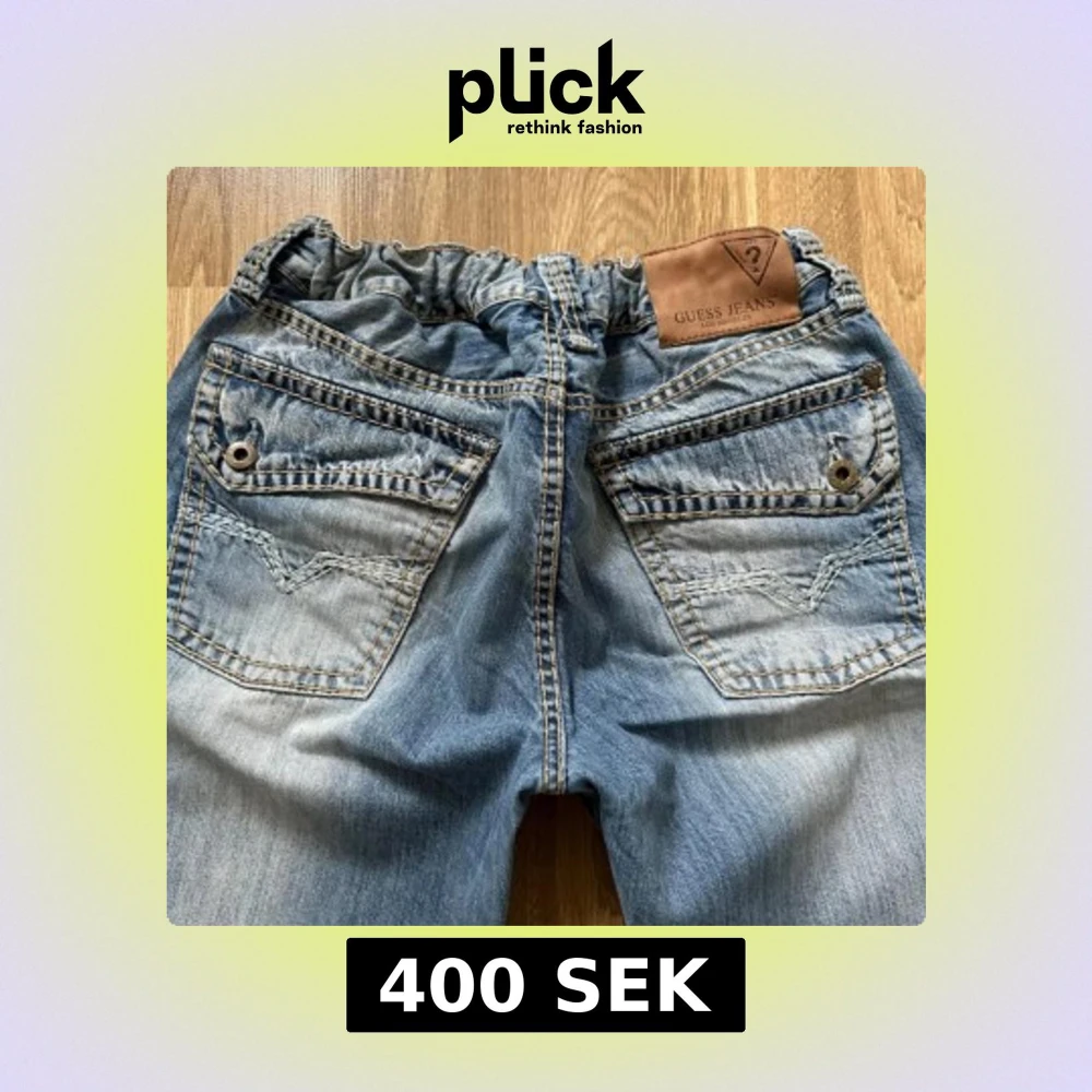 Snygga blå jeans från Guess med en avslappnad passform. De har en elastisk midja då det är ett resårband man kan justera midjan själv, och bakfickor med knappdetaljer. 💙