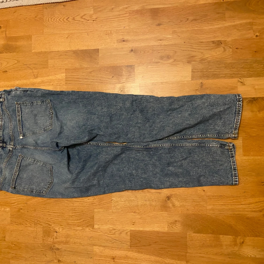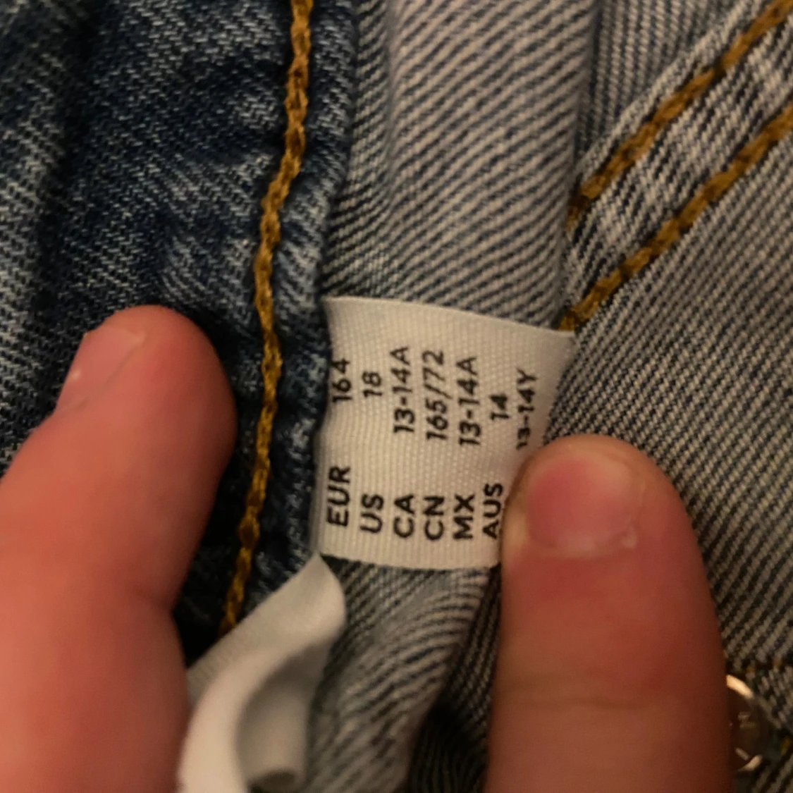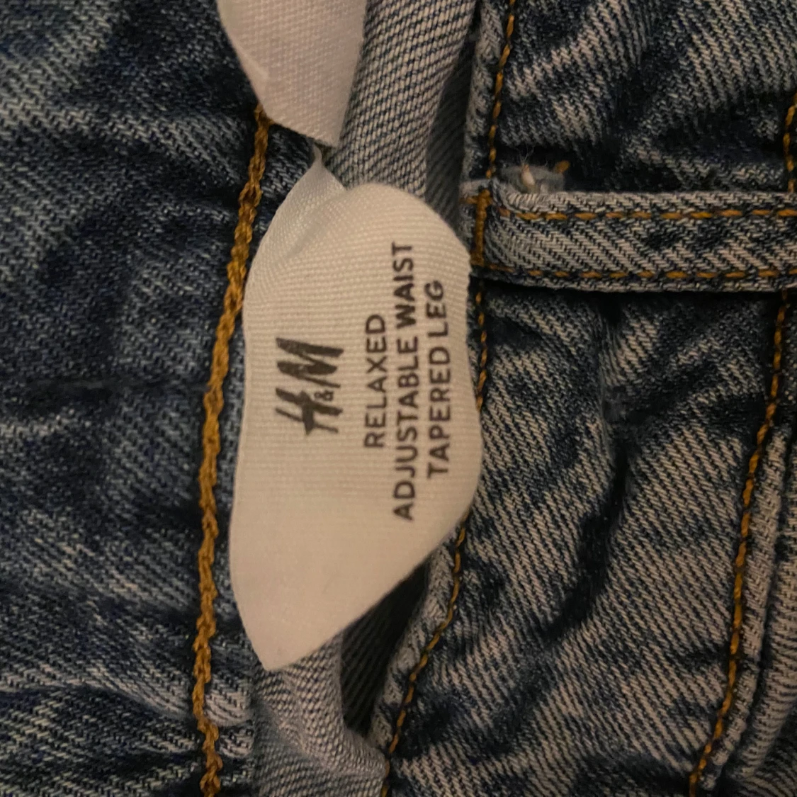 Säljer ett par blå jeans från H&M i storlek 164. De har en relaxed fit med justerbar midja och avsmalnande ben. Perfekta för en avslappnad stil och passar till de flesta tillfällen. De är i bra skick och redo för en ny ägare!