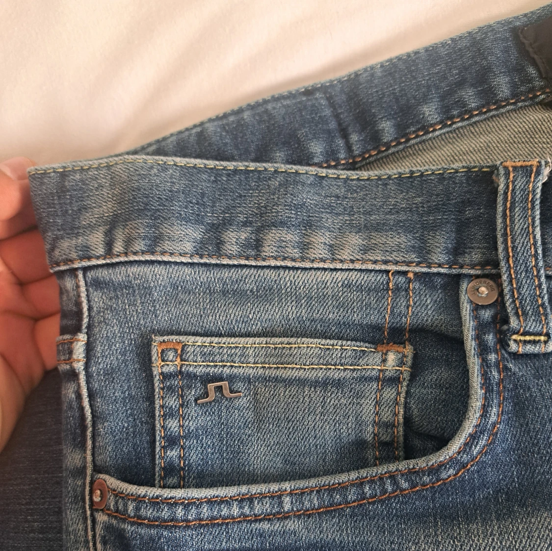 Snygga blå jeans från J.Lindeberg med klassisk femficksdesign och coola slitningar framtill och baktill. Jeansen har raka ben och normal passform, tillverkade i mjukt denimtyg. Perfekta för en avslappnad och trendig look.