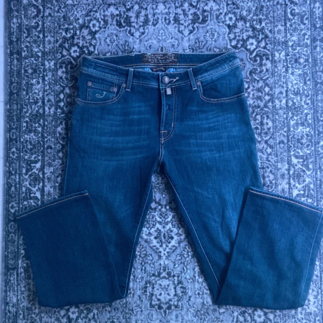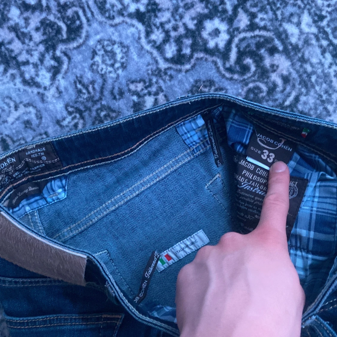 Blå jeans från Jacob Cohën! Modellen är comfort 620. Storlek 33 jag skulle säga att de passar W30-31 L31-33. Lyxjeansen är i väldigt bra skick. De har lite stretch i sig. Hör av dig vid frågor!