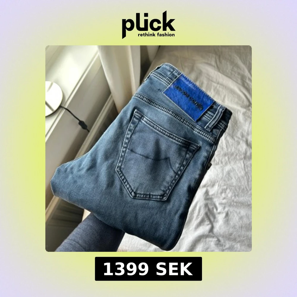 Snygga blå jeans från Jacob Cohen med klassisk femficksdesign, små slitningar och en diskret logga på bakfickan. Perfekta för en stilren look. De har en dragkedja och knapp framtill.