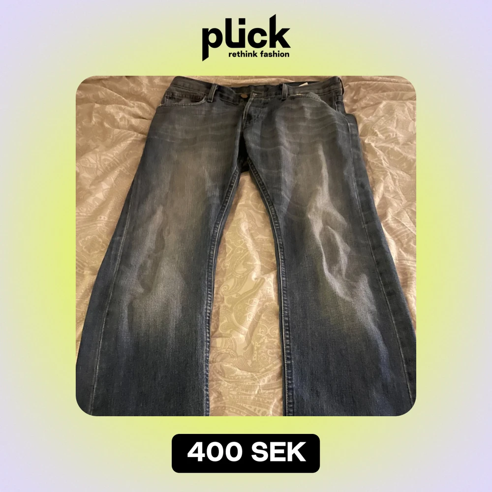 Säljer ett par klassiska blå jeans från Lee i bra skick. De har en snygg tvättad look och är perfekta för vardagsbruk. Jeansen har en normal passform och är tillverkade i slitstarkt denim. Perfekta för både höst och vår!