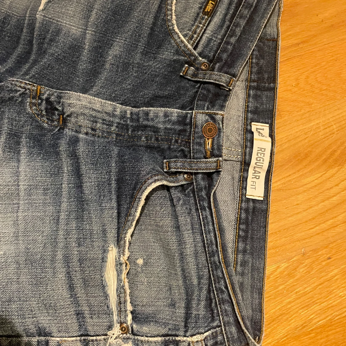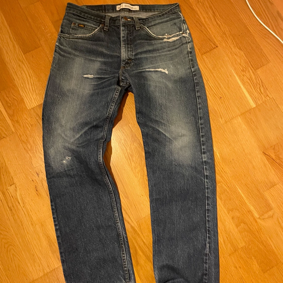 Blå jeans från Lee i modellen Regular Fit. Rak passform. Riktigt snygga slitningar och tvätt.