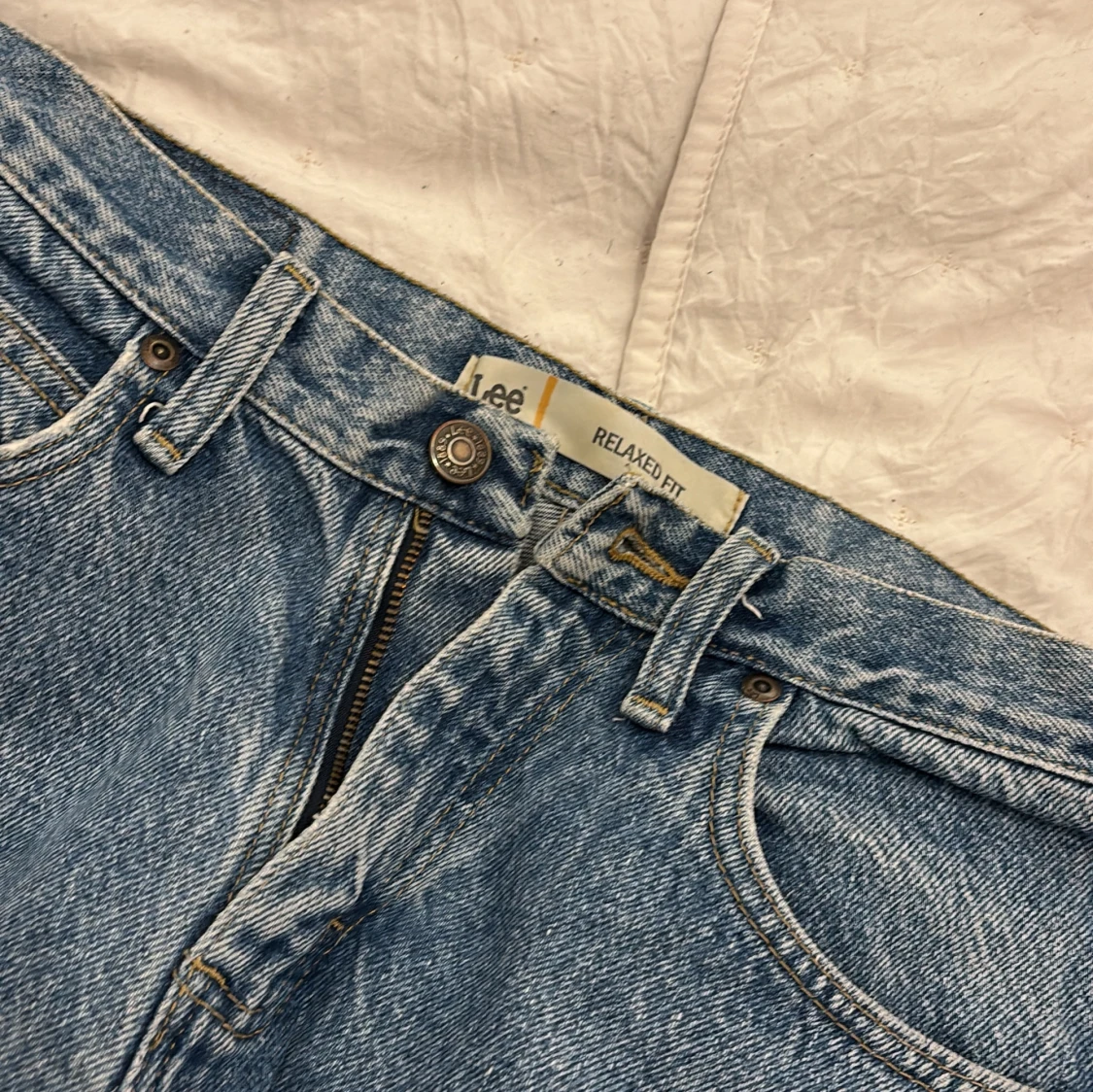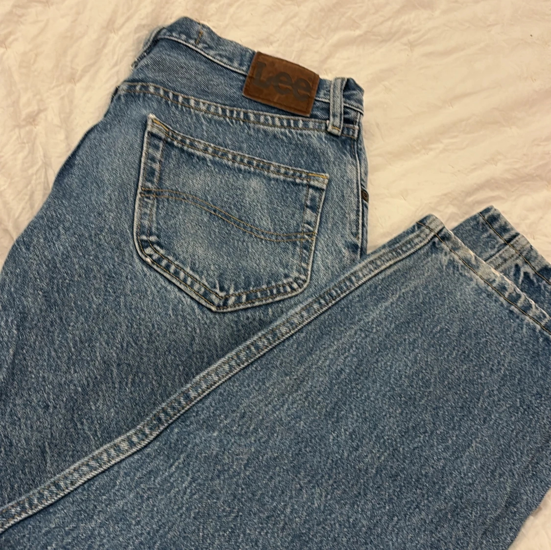 Säljer ett par klassiska blå jeans från Lee med relaxed fit. De har en dragkedja och knapp framtill samt en bakficka med Lee-logga. Perfekta för en avslappnad stil. W29L30