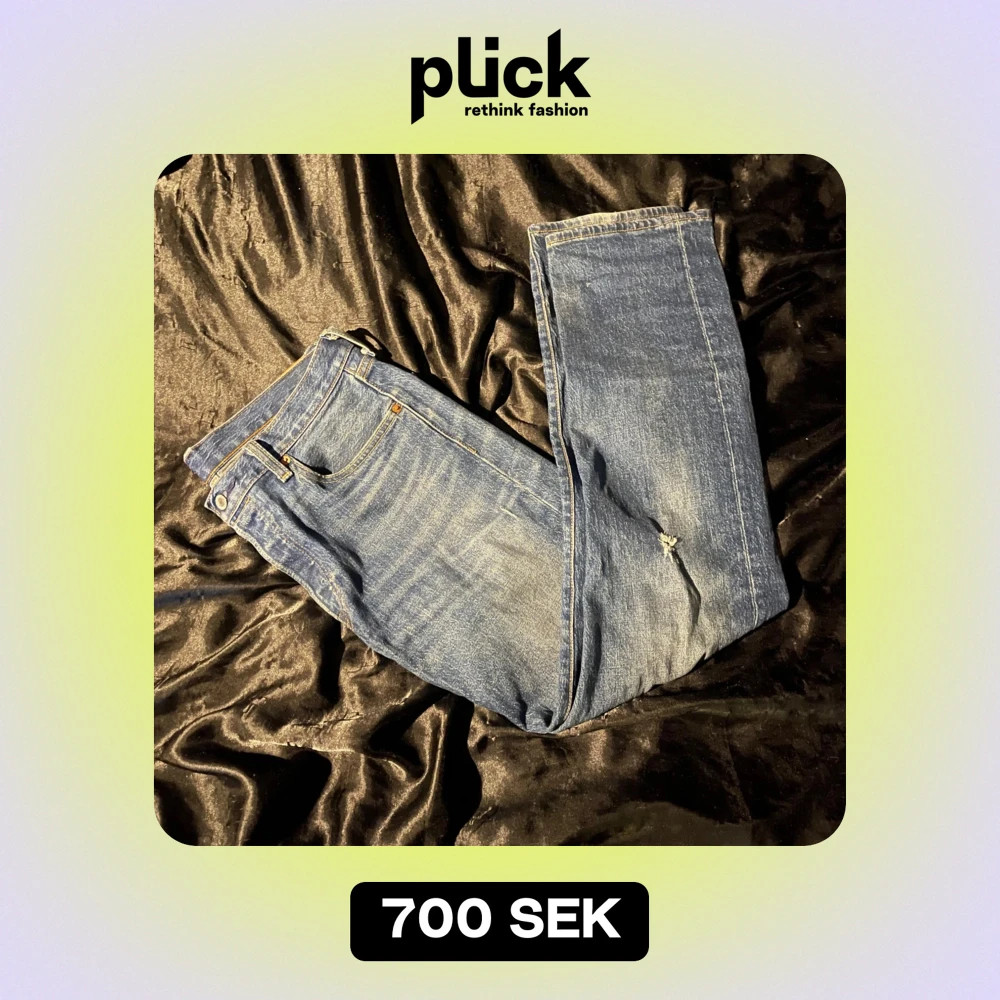 Säljer ett par klassiska blå Levi's jeans i modell 501. De är i bra skick med en liten slitage på ena benet för en cool look. Perfekta för både vardag och fest! Passar till allt och är superbekväma. 🕺slitaget är original och inte riktiga.
