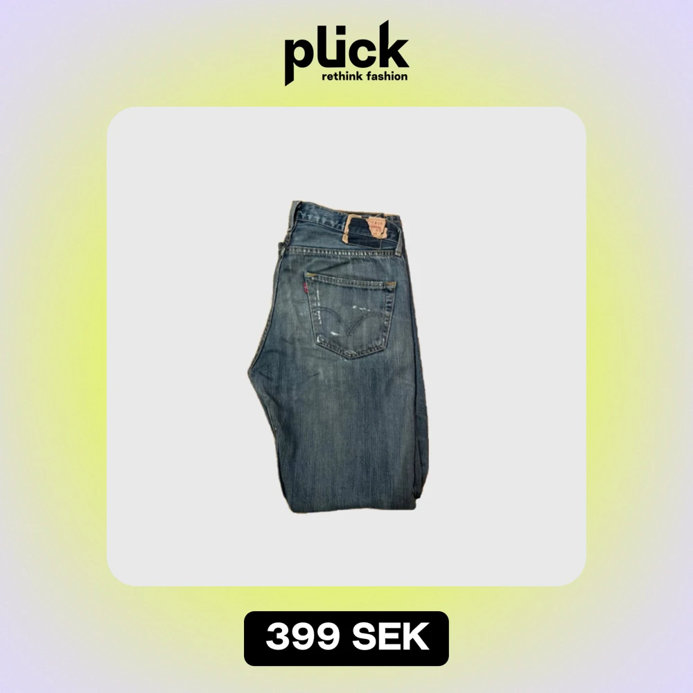 Säljer ett par unika blå jeans från Levis med slitna detaljer och en avslappnad passform. Perfekta för en casual look med en vintage touch. De har och fem fickor, och är speciella på marknaden. W33 L32. Bara att höra av er vid funderingar eller frågor:)