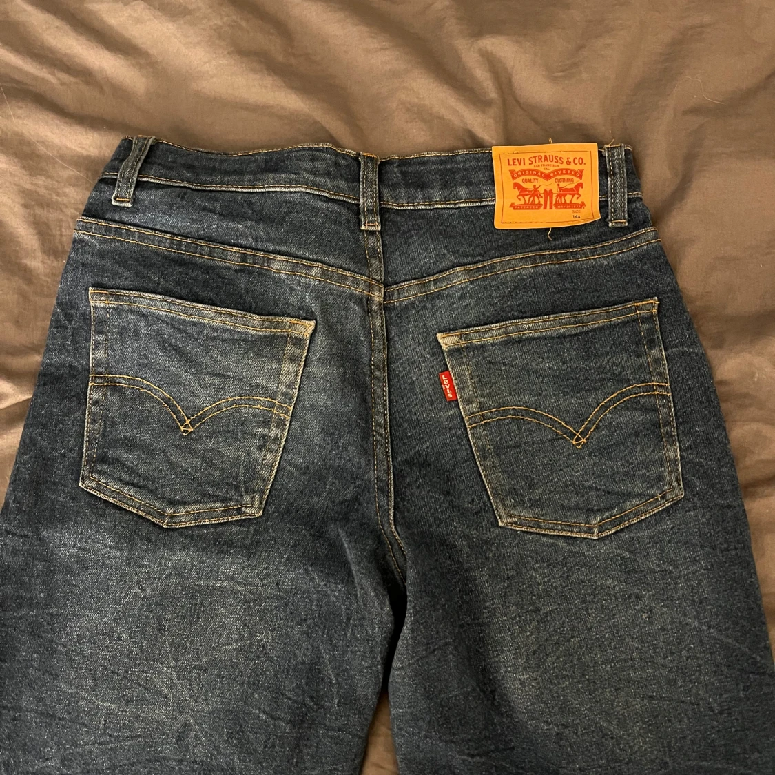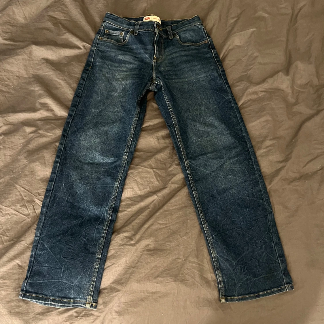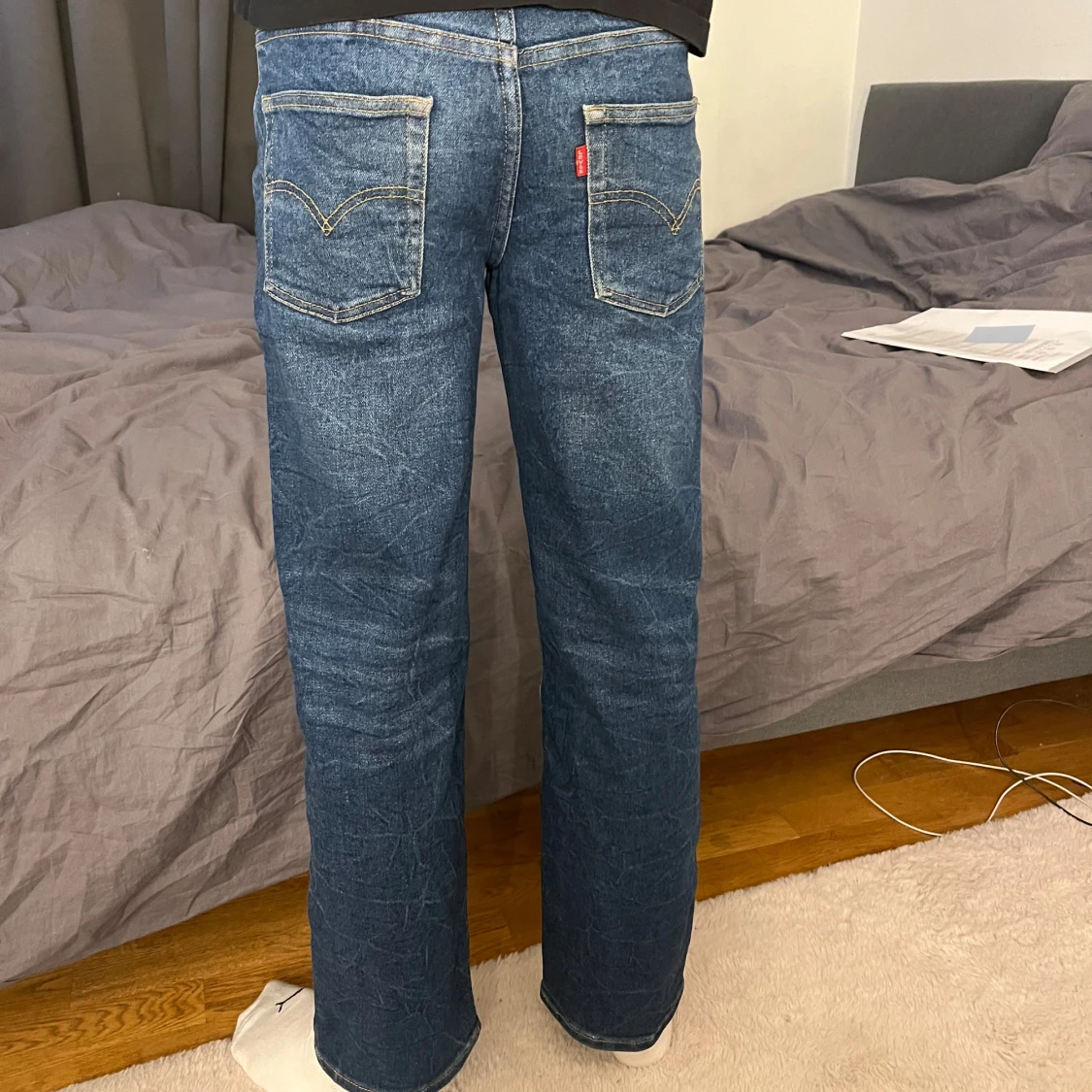 Säljer ett par klassiska blå Levi's jeans i bra skick. De har en straight passform och är perfekta för vardagsbruk. Jeansen har den ikoniska röda Levi's-lappen och en läderpatch baktill. Perfekta för både höst och vår! Knappt använda därav till salu.