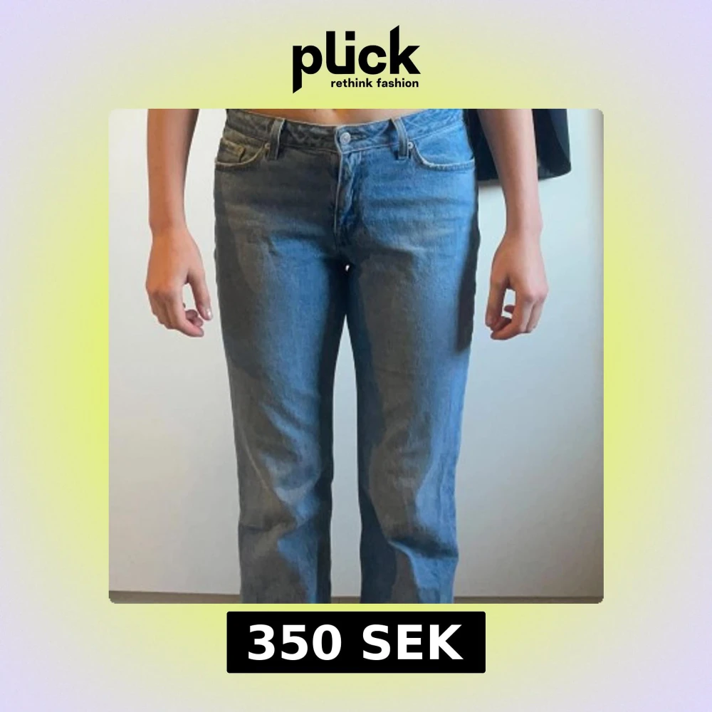 Säljer ett par klassiska blå Levis jeans med normal passform. De har en knappgylf och femficksdesign. Perfekta för en avslappnad stil.