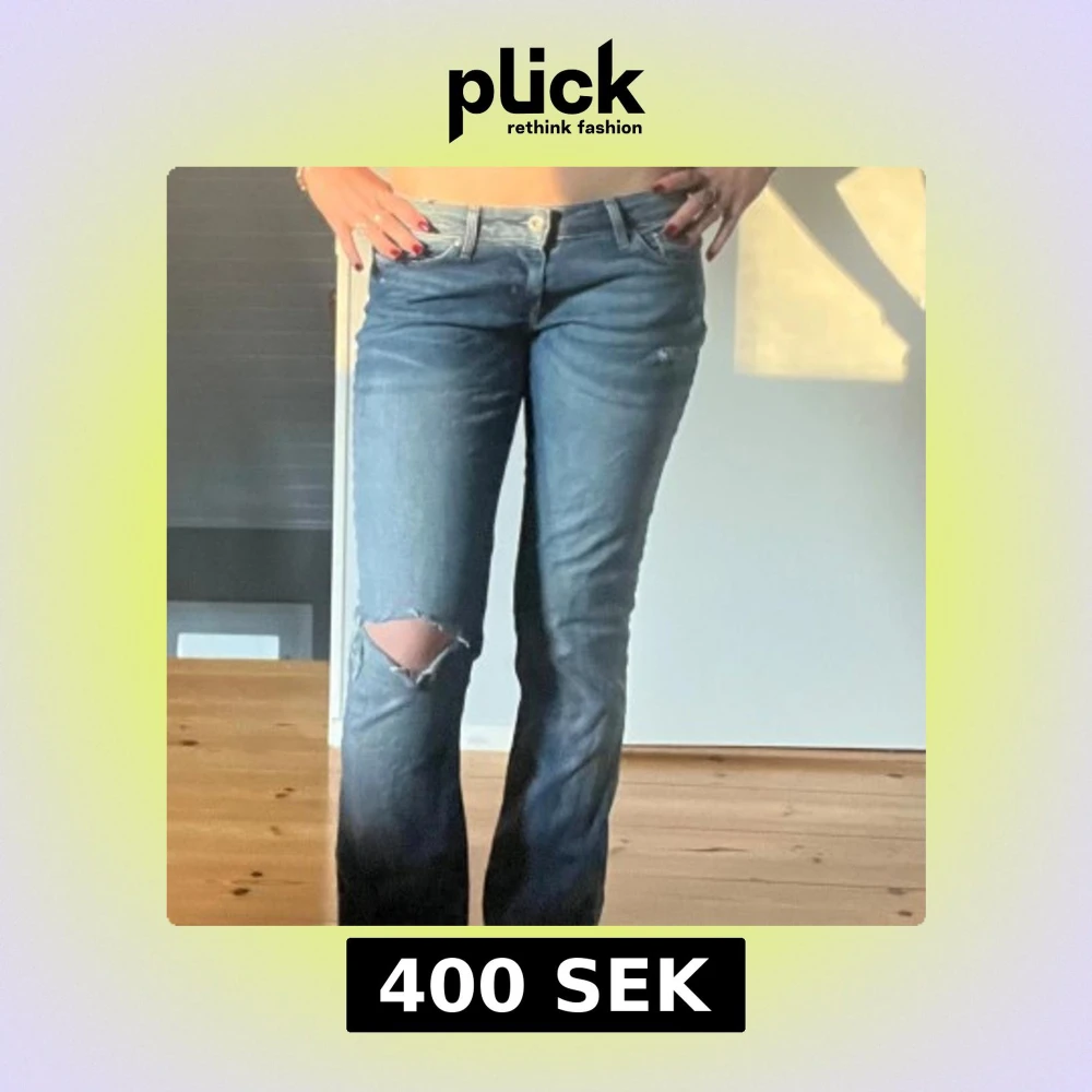 Snygga blå jeans med slitningar på ena knät, vinted från Levis. Står storlek 29 men passar mig som brukar ha s.