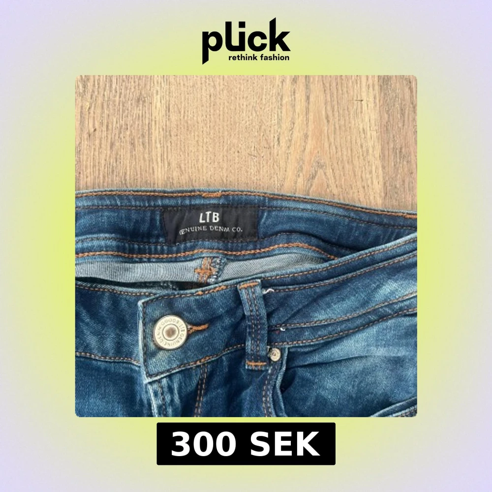 Snygga blå jeans från LTB med leopardmönstrad insida. Byxorna är lågmidjade och flared, inga skador eller fläckar/defekter. Stl 26/30