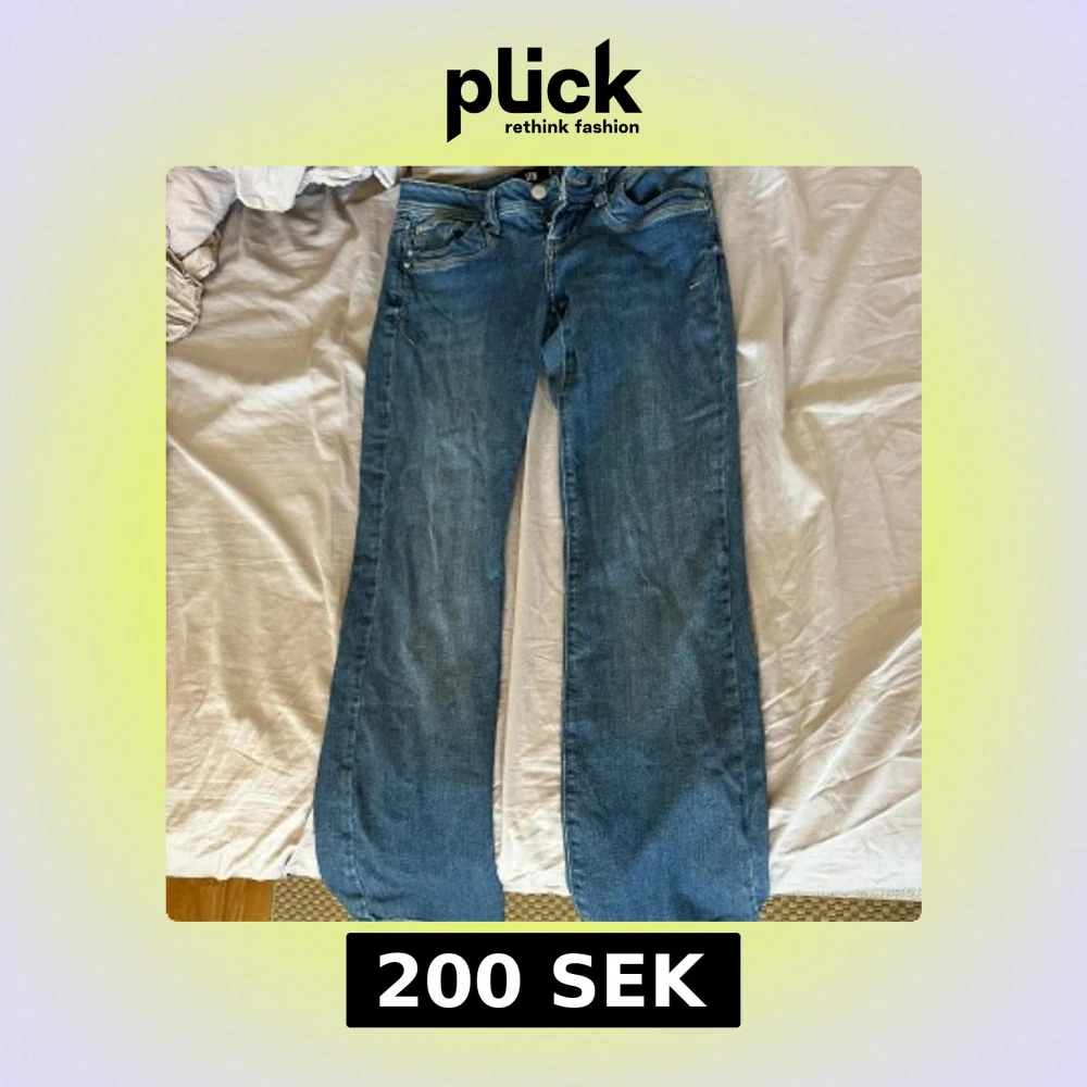 Säljer ett par klassiska blå jeans med lite bootcut fast raka. De har en traditionell femficksdesign och stängs med dragkedja och knapp. I storlek W26 L30. Nästan aldrig andvända