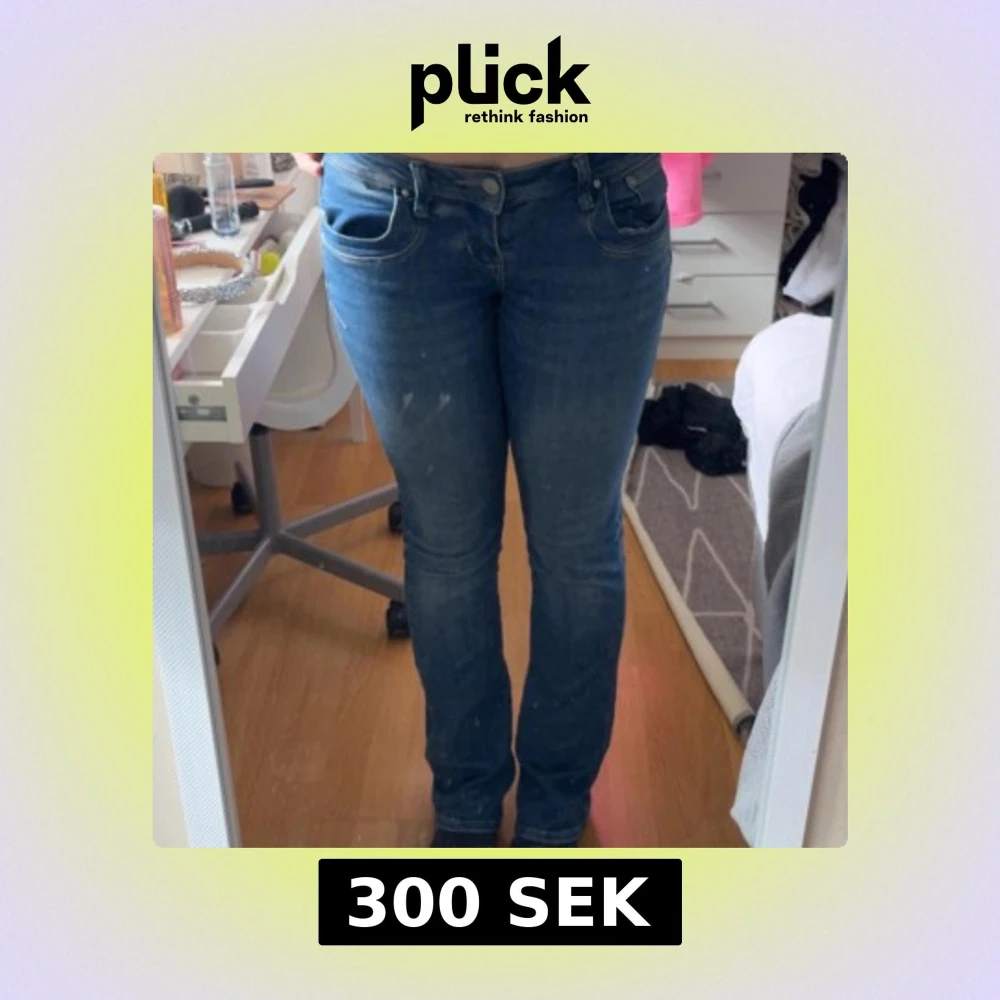 Säljer ett par klassiska blå jeans från LTB i modellen valerie. Jeansen har normal passform och fem fickor. Tillverkade i mjukt denimtyg med snygga sömmdetaljer på bakfickorna.