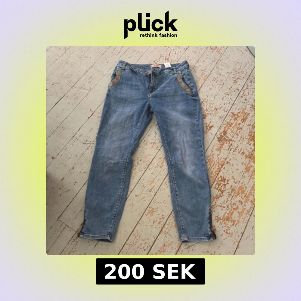 Snygga blå jeans från Mos Mosh med coola broderade detaljer vid fickorna och dragkedja vid benslut. Modellen har klassisk femficksdesign och raka ben med något smalare passform. Perfekta för dig som gillar stilrena jeans med en twist.