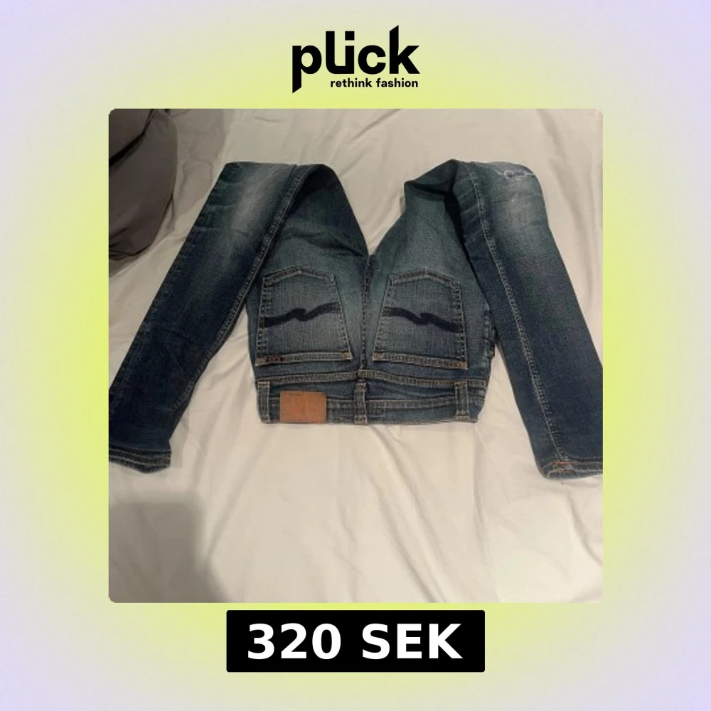 Säljer ett par snygga blå jeans från Nudie Jeans . De har en cool slitning på ena benet och klassiska bakfickor med märkets signaturbroderi. Perfekta för en avslappnad stil och passar till både vardag och fest. Hör av er vid frågor!🤩