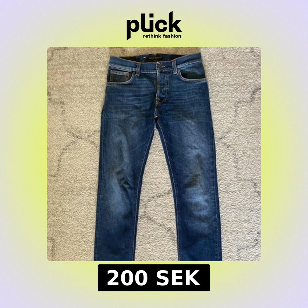 Snygga blå jeans från Nudie Jeans Co med klassisk femficksdesign och kontrastsömmar. Jeansen har en rak passform och är tillverkade i slitstarkt bomullsjeans. Perfekta för dig som gillar en tidlös och stilren look. Storlek 27/32