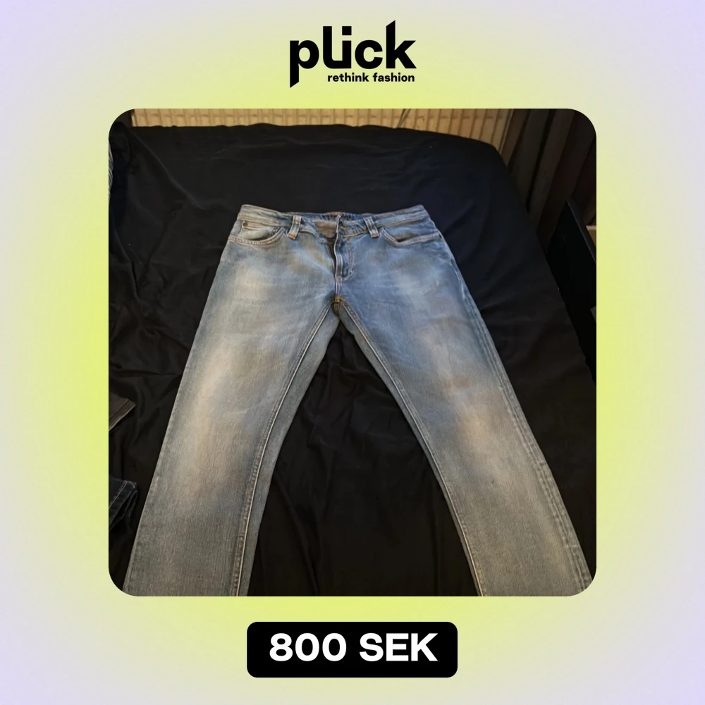 Säljer ett par snygga blå jeans från Nudie Jeans i bra skick. De har en klassisk femficksdesign och en bekväm passform. Perfekta för både vardag och fest! 🕺 nypris 1500kr och använt dem cirka 2 gånger