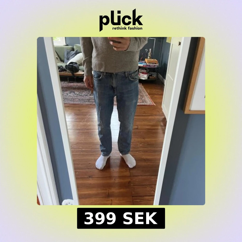 Säljer ett par klassiska blå jeans från Nudie med raka ben och normal passform. Jeansen har fem fickor, snygga kontrastsömmar och Nudie-logga på bakfickan. Tillverkade i slitstark denim av bomull. Perfekta för dig som gillar en enkel och tidlös look. MODELL: gritty Jackson
