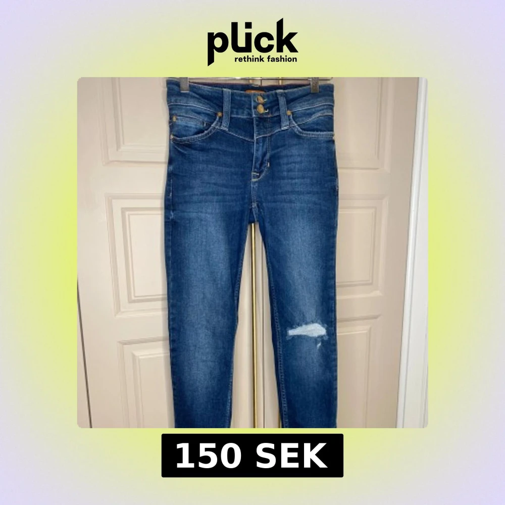 Snygga blå jeans från O Denim med en slitning på ena benet. De har en klassisk femficksdesign och en bekväm passform. Perfekta för en avslappnad stil.