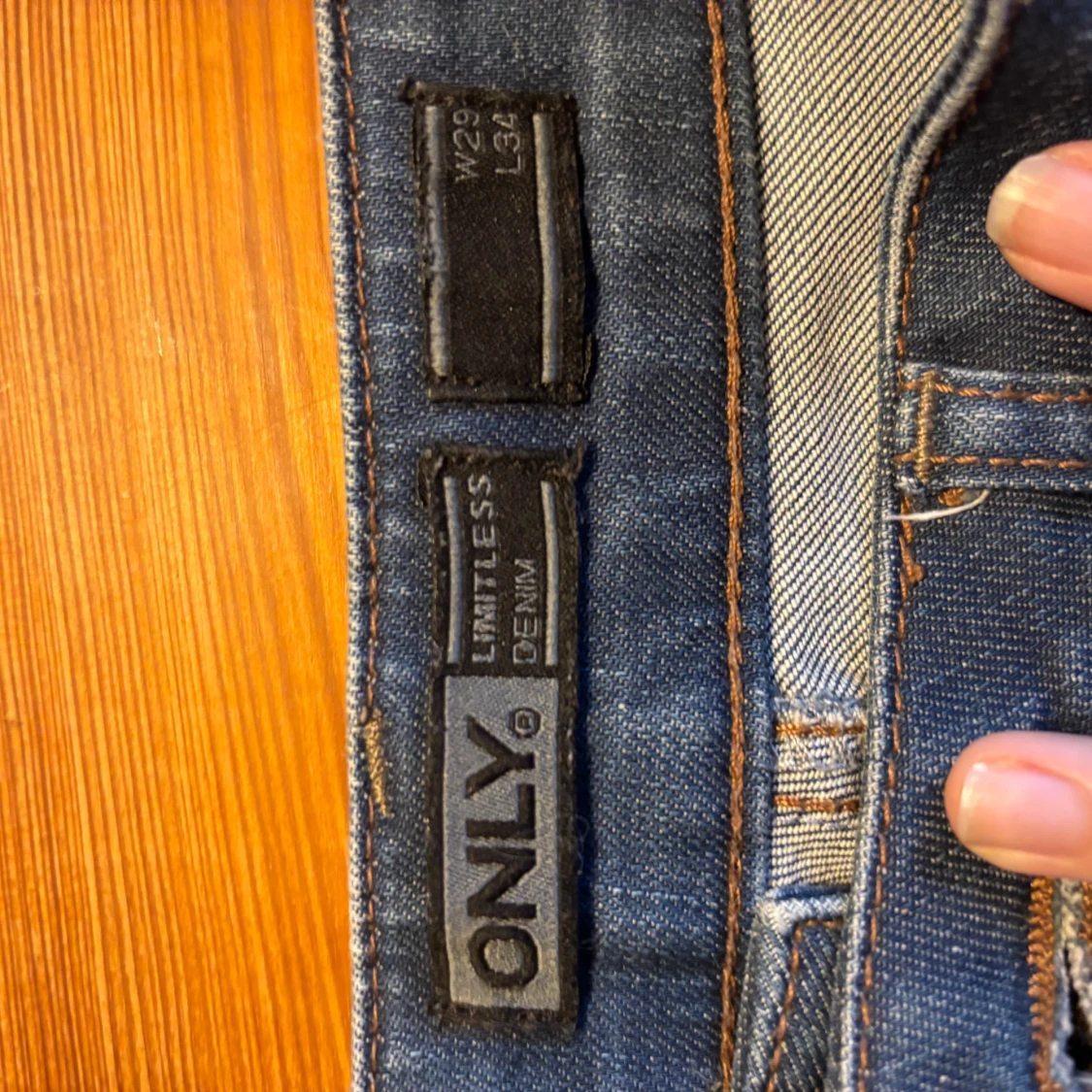 Säljer ett par snygga blå jeans från ONLY. De har en klassisk femficksdesign och är tillverkade i denim. Perfekta för en avslappnad stil. Midjan är normal och passformen är straight.