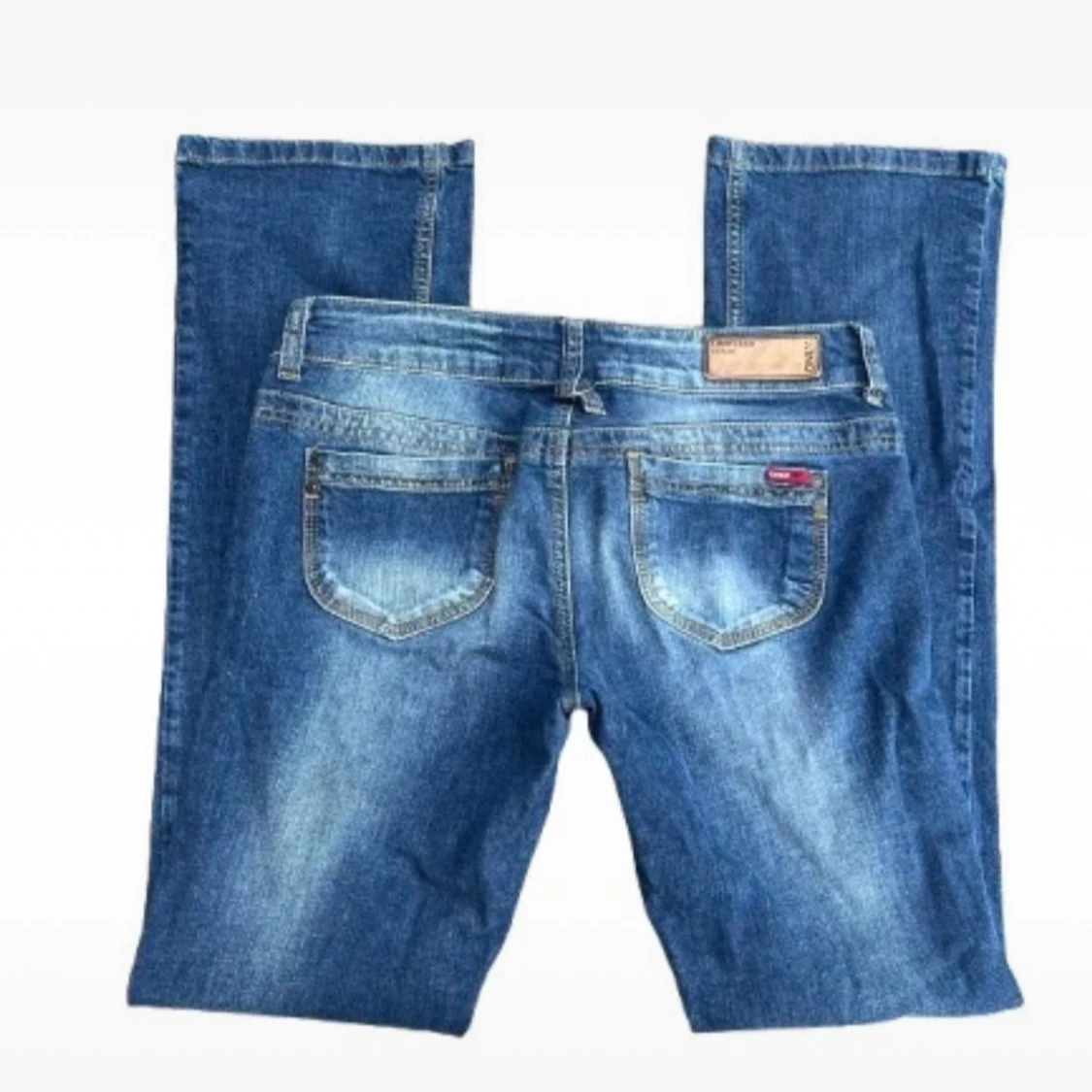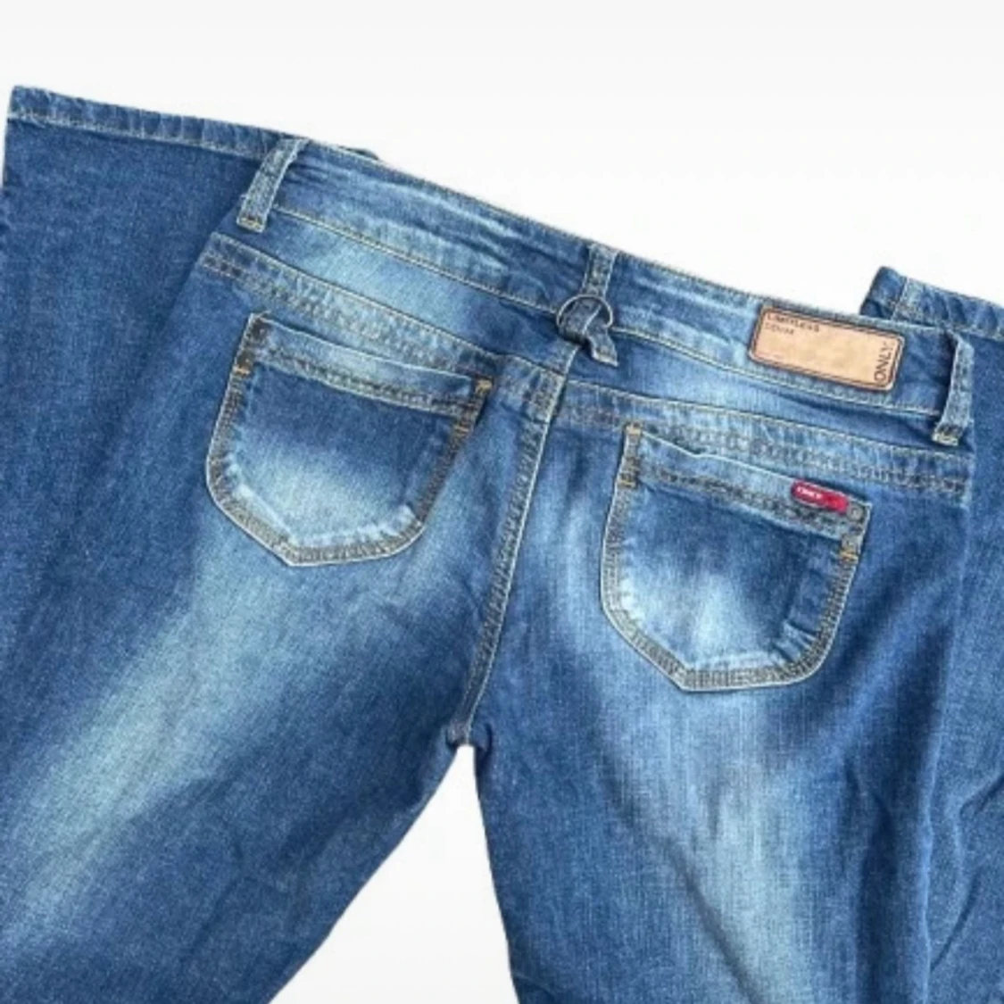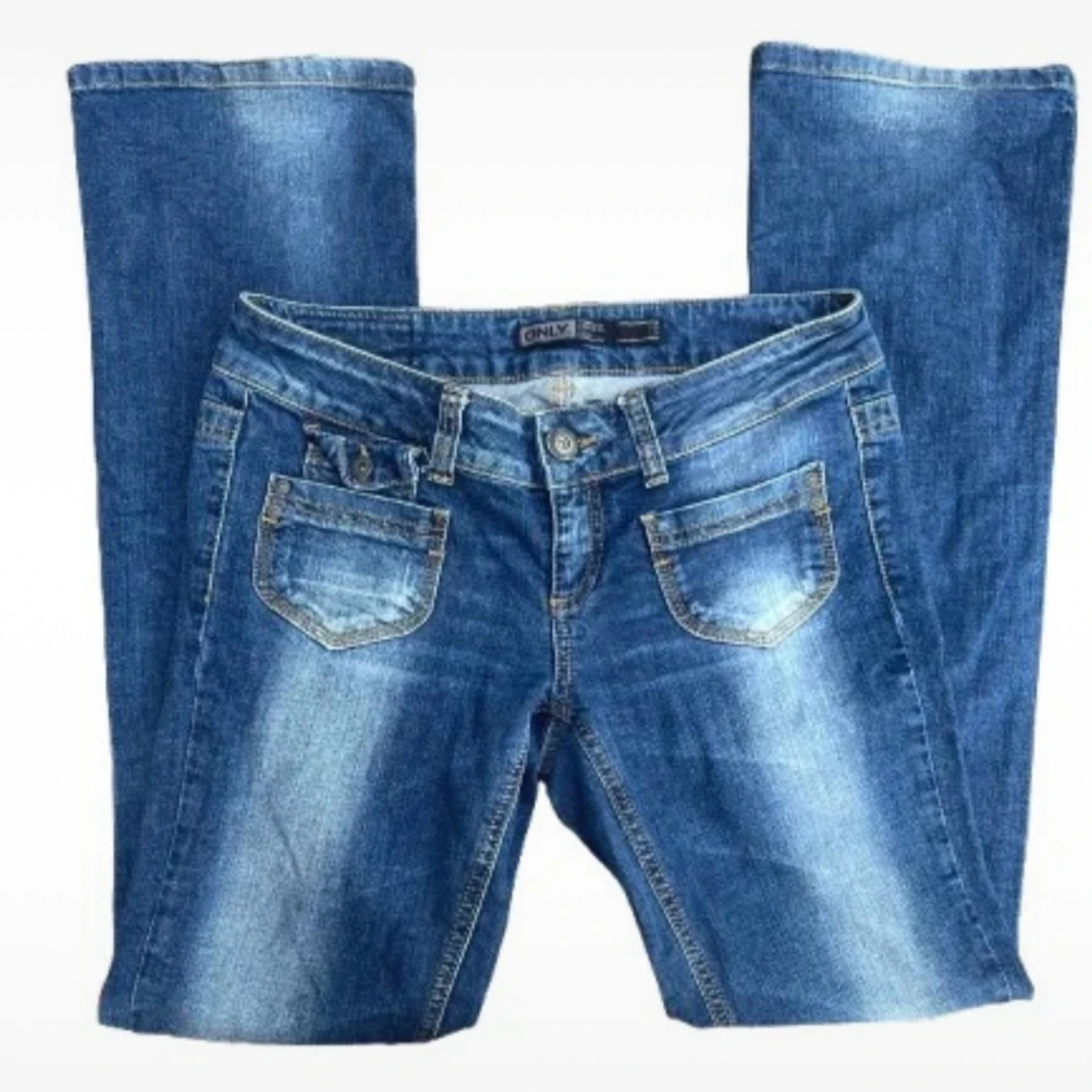 Lågmidjade bootcut jeans med coola detaljer från Only W30, L34 Midjemått- ca 80cm men de är väldigt stretchiga i materialet Innerbenslängd- ca 83cm I jättefint skick