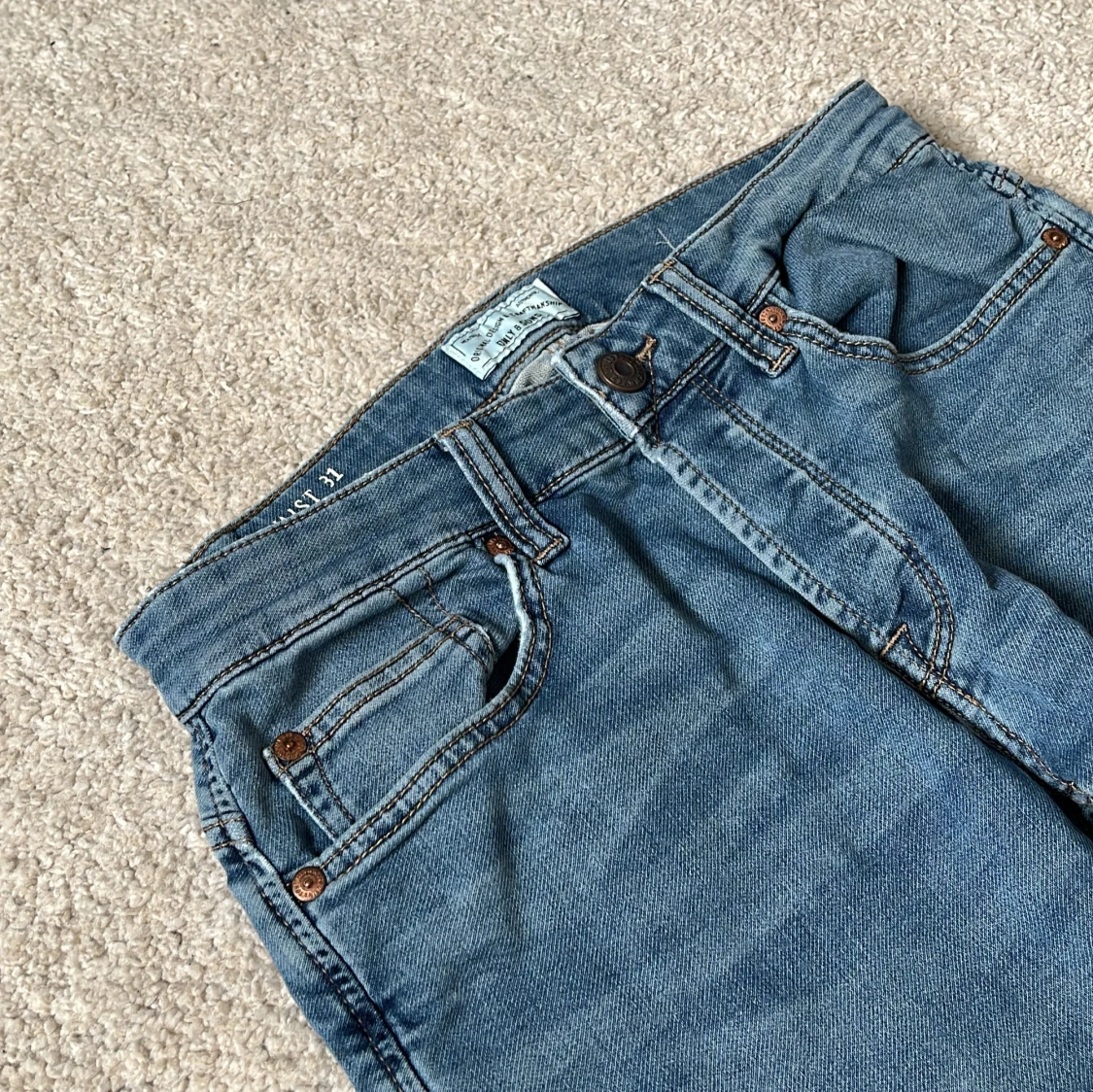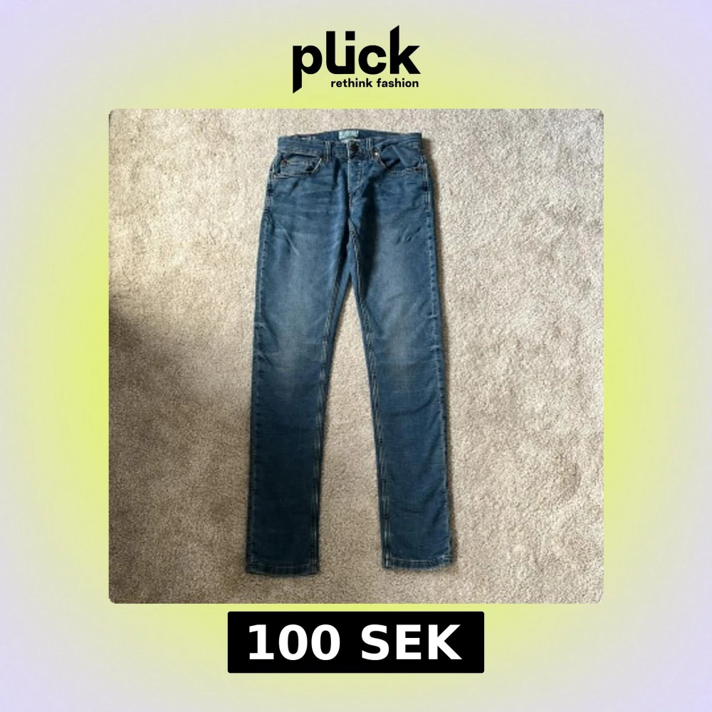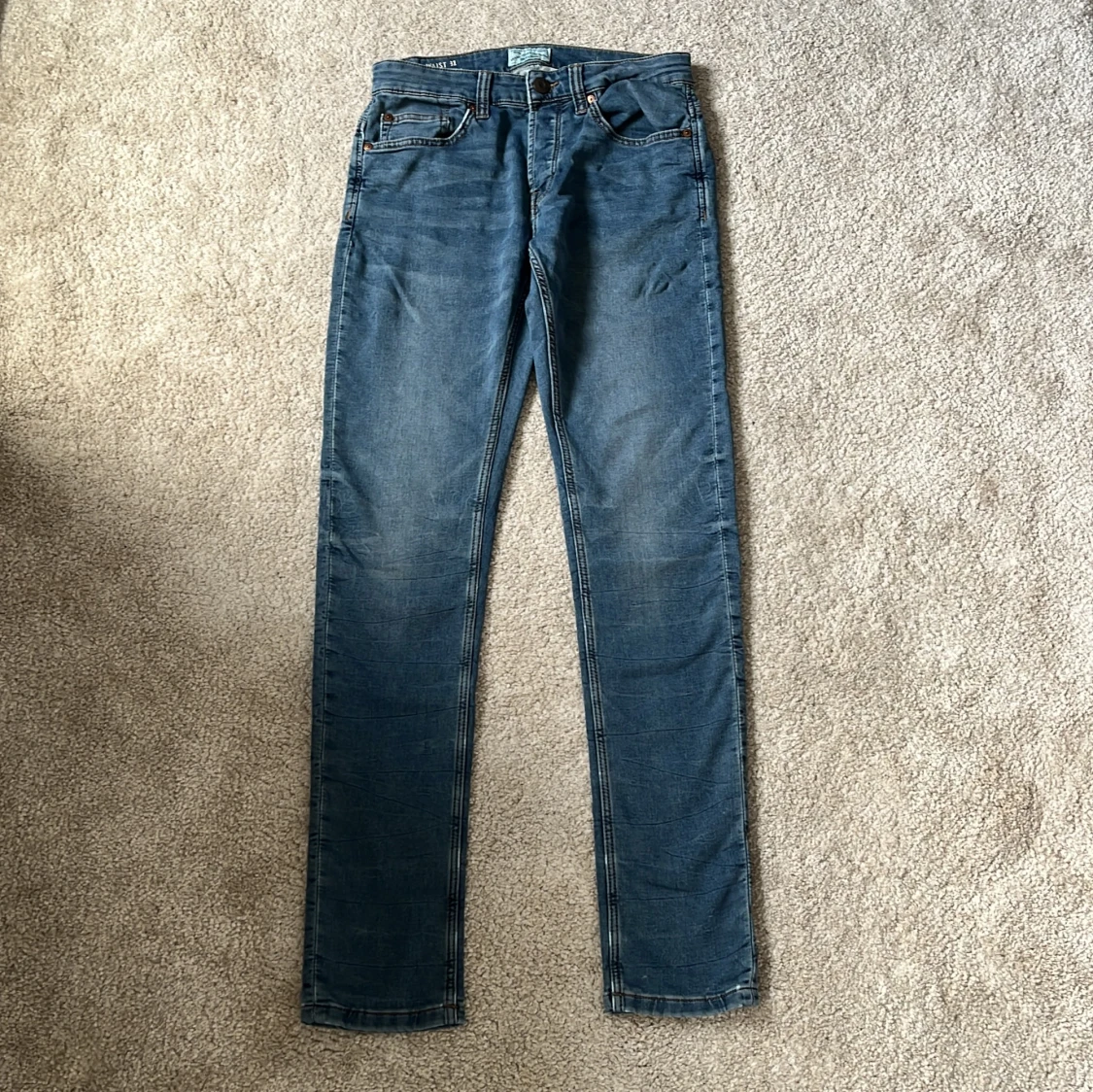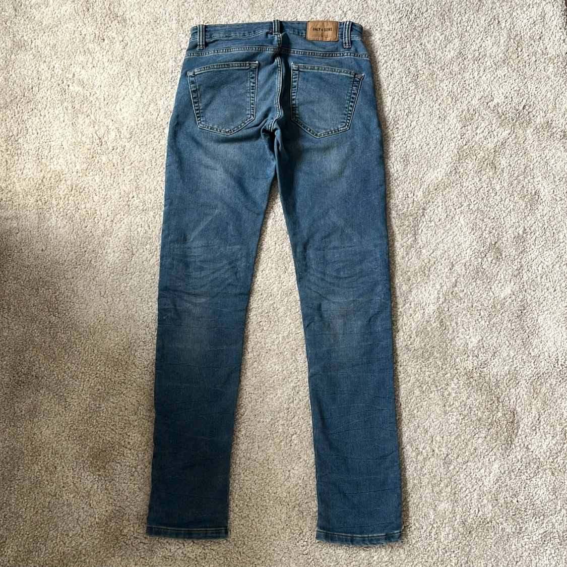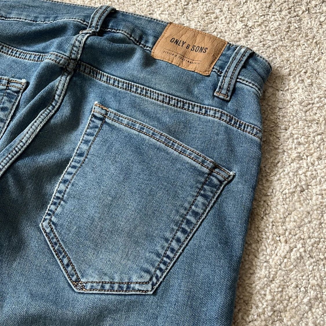 Snygga blå jeansbyxor från only & sons med klassisk femficksdesign och raka ben. Jeansen har normal passform, bälteshällor och dragkedja med knapp framtill. Perfekta till en avslappnad stil och funkar året runt. Oslagbart bra pris som alla har råd med! Storleken är 31/34 och är slim fit