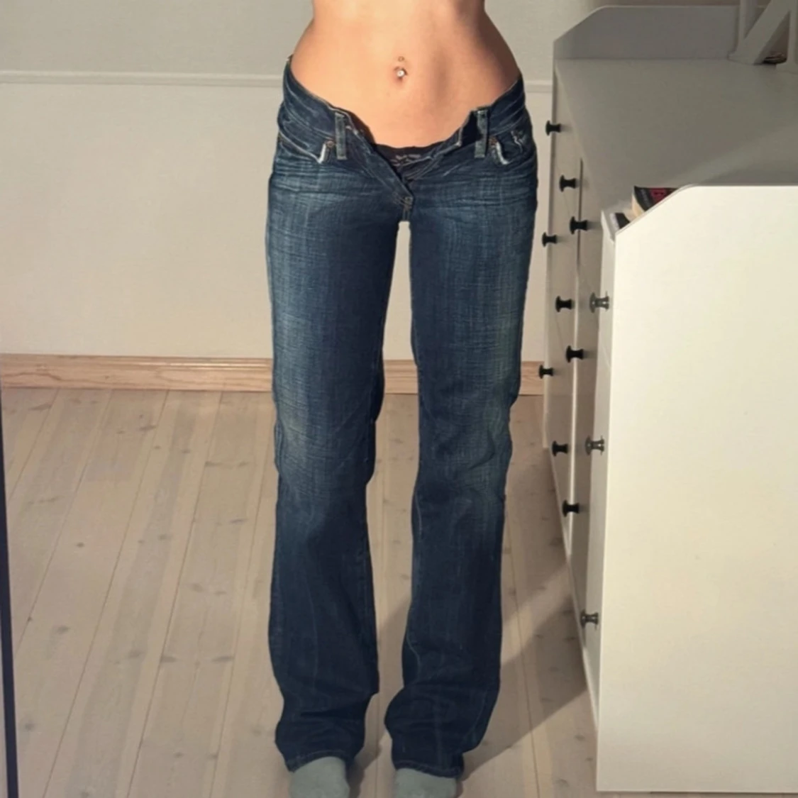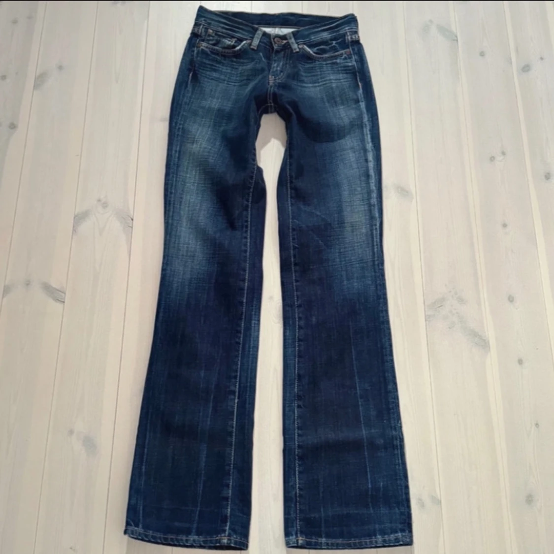Snygga blå jeans från Pepe Jeans med bootcut-stil och låg midja. De har en klassisk femficksdesign och en lätt tvättad look. Perfekta för en avslappnad stil.