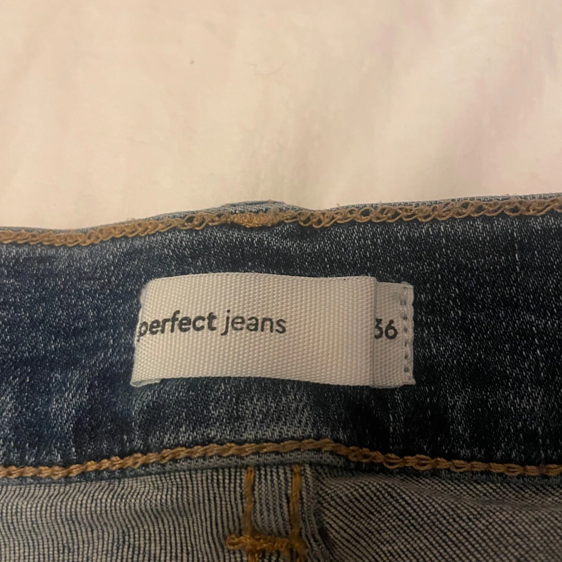 Snygga blå jeans från Ginateicit, modellen är från Perfect Jeans i storlek 36. Klassisk design med knapp och dragkedja framtill. Skriv för bild på