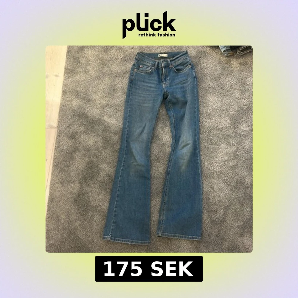 Snygga blå jeans från Perfect Jeans med klassisk femficksdesign och bootcut-stil. Det är low waist. Jeansen har en dragkedja och knapp framtill. Jag säljer dem för att dem är för små för mig och dem är använda ett fårtal gånger. Frakten ingår i priset