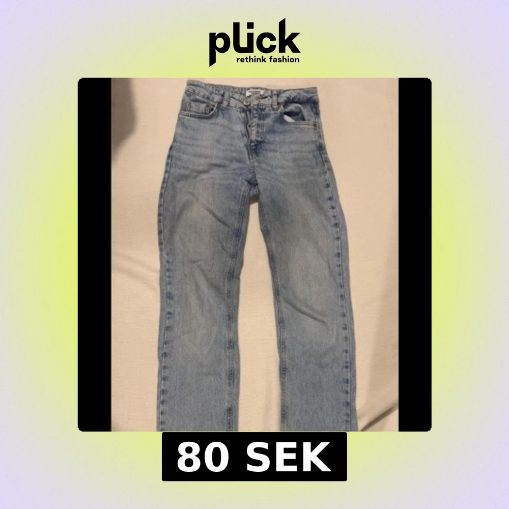 Säljer ett par klassiska blå jeans från Pull&Bear. De har en rak passform och är tillverkade i ett slitstarkt denimtyg. Perfekta för en avslappnad stil.
