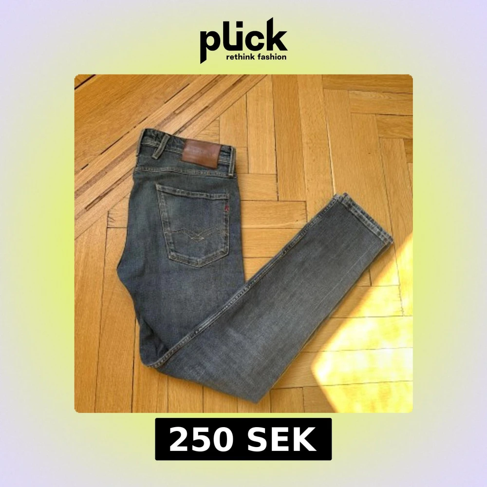 Snygga blå jeans från Replay med klassisk femficksdesign och en läderpatch baktill. Jeansen har en slim passform och är perfekta för en stilren look. De är tillverkade i ett slitstarkt denimtyg. Finns en liten fläck (bild 4) men syns inte vid användning. W31 L32. Pris kan diskuteras vid snabb affär!