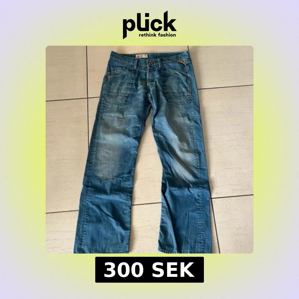 Snygga blå jeans från Replay och Ralf Lauren med en klassisk design. De har en rak passform och är tillverkade i slitstarkt denim. Byxorna har fem fickor och en knappgylf med dragkedja. Perfekta för en avslappnad stil. Storlek W36 L34