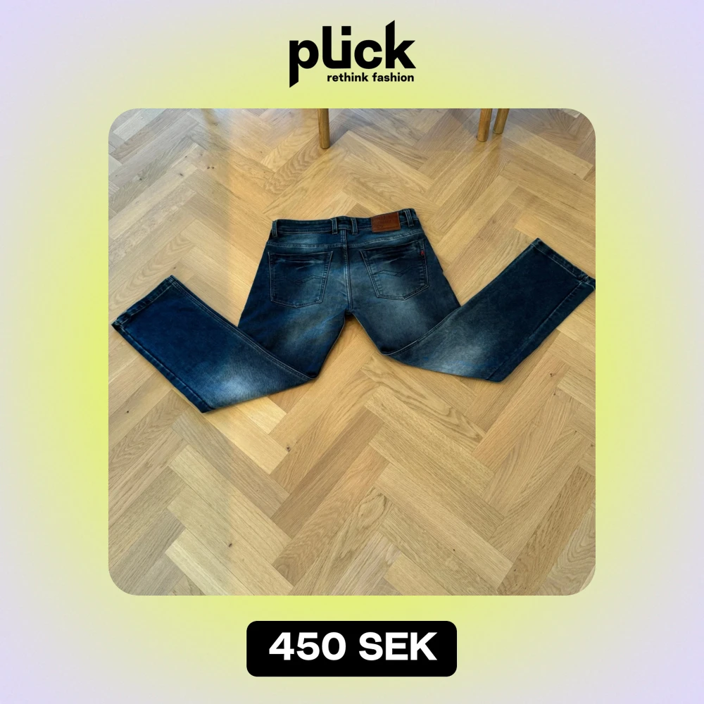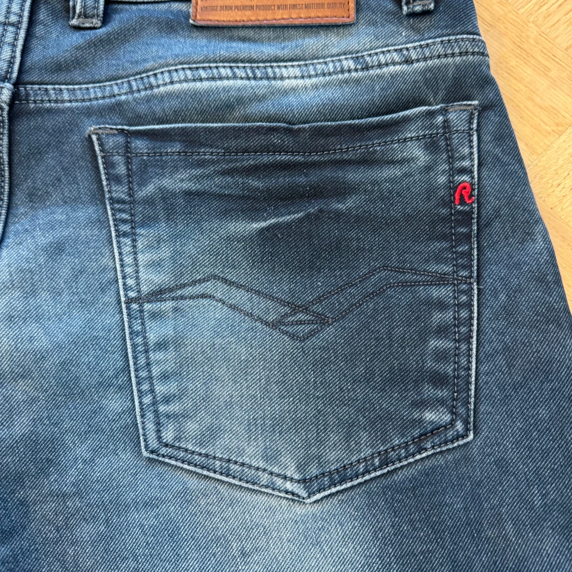 Säljer ett par snygga blå jeans från replay. W31/32 L32 straight fit. Snygg design på vänster ficka och är väldigt prisvärda eftersom de inte har några slitmärken. Priset kan diskuteras.