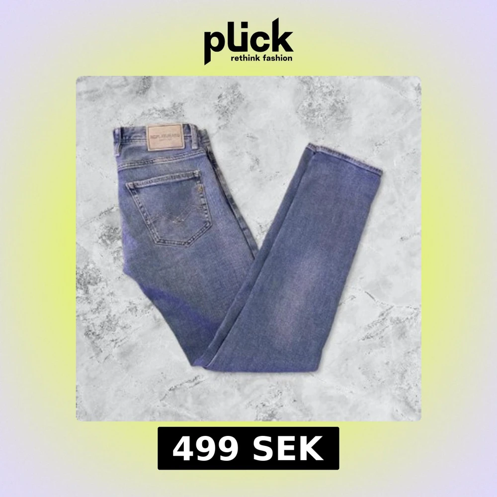 Snygga blå jeans från Replay med klassisk femficksdesign och knappgylf. Perfekta för en avslappnad stil. Byxorna är bra skick och använda fåtal gånger.